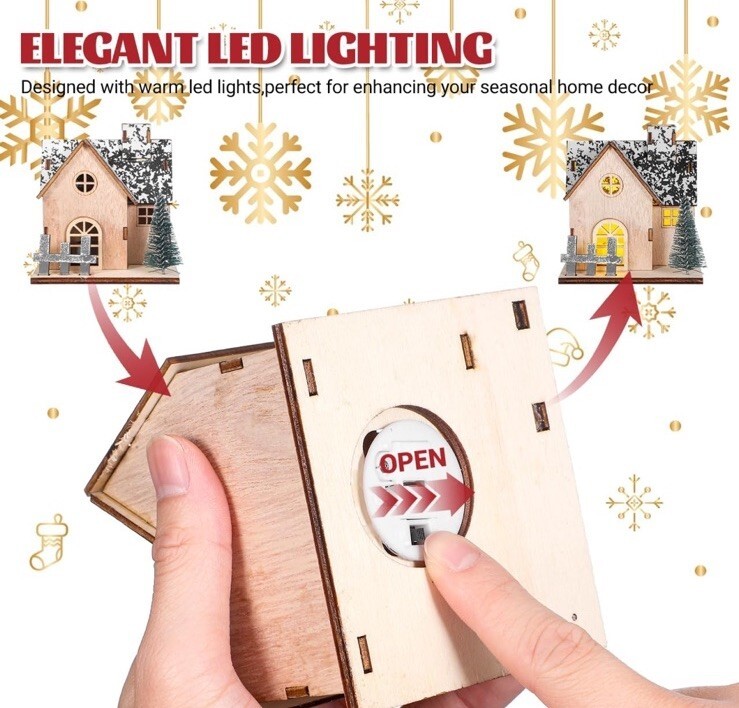 Wooden House LED Light With Tree Custom Christmas DIY Lights Mini For Christmas