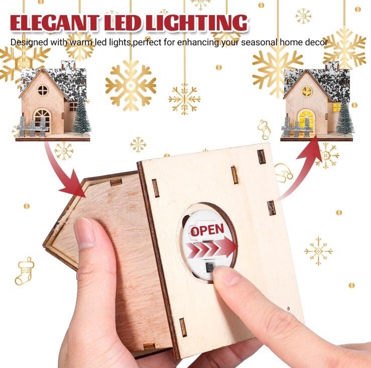 Wooden House LED Light With Tree Custom Christmas DIY