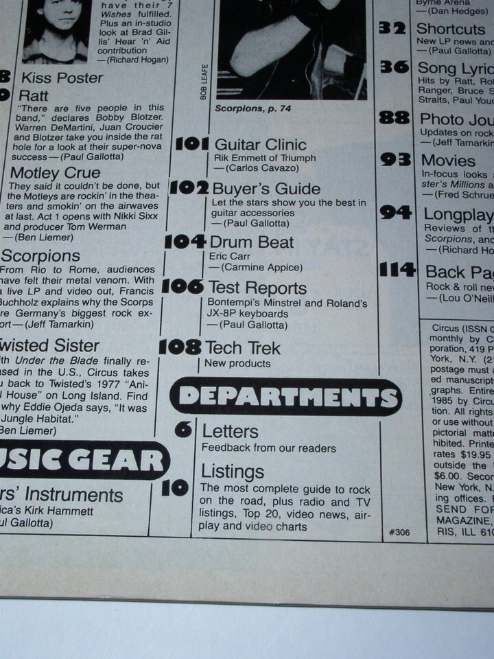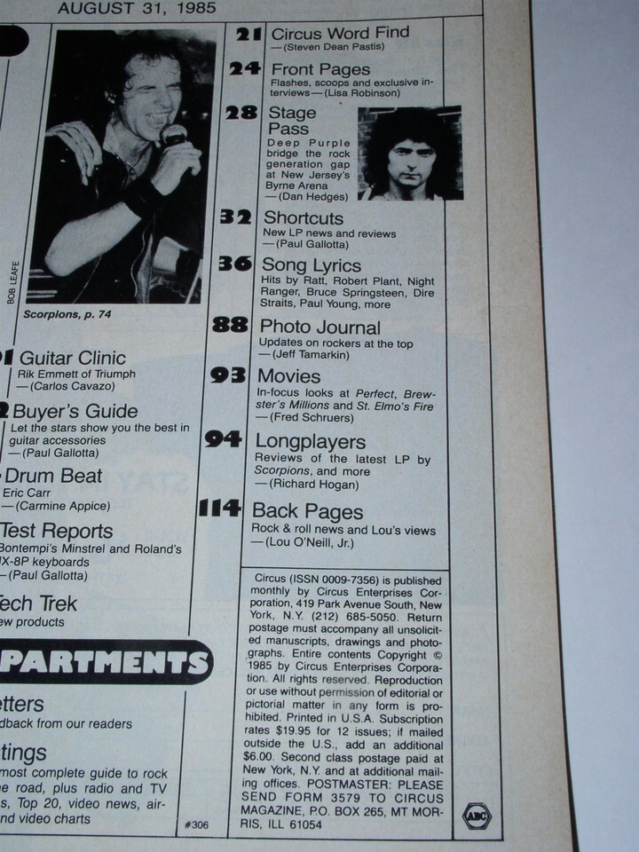 This is the August 31, 1985 issue of "Circus" magazine. Cover story on Dokken, shared with Kiss, Motley Crue, and Ratt. Inside: Night Ranger, Scorpions, Twisted Sister. Centerfold: Paul Stanley of KISS. A terrific item for the fan or collector.