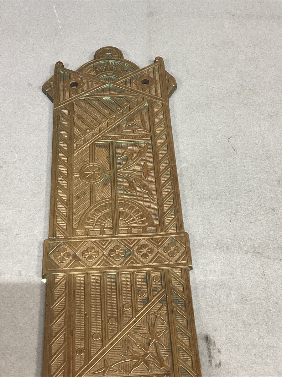 Pair Of Ornate 1880?s Cast Bronze Swinging Door Floral Push Plates. In good, used condition. Please see the pictures. These are very hard to find. No screws included. These measure 12.5?Lx3.25?W at the widest point.