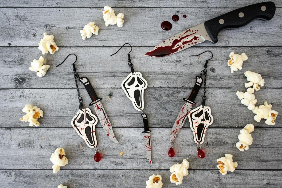 Bloody Knife Ghost Jewelry, Scary Movie Inspired Horror Earrings, Blade Design