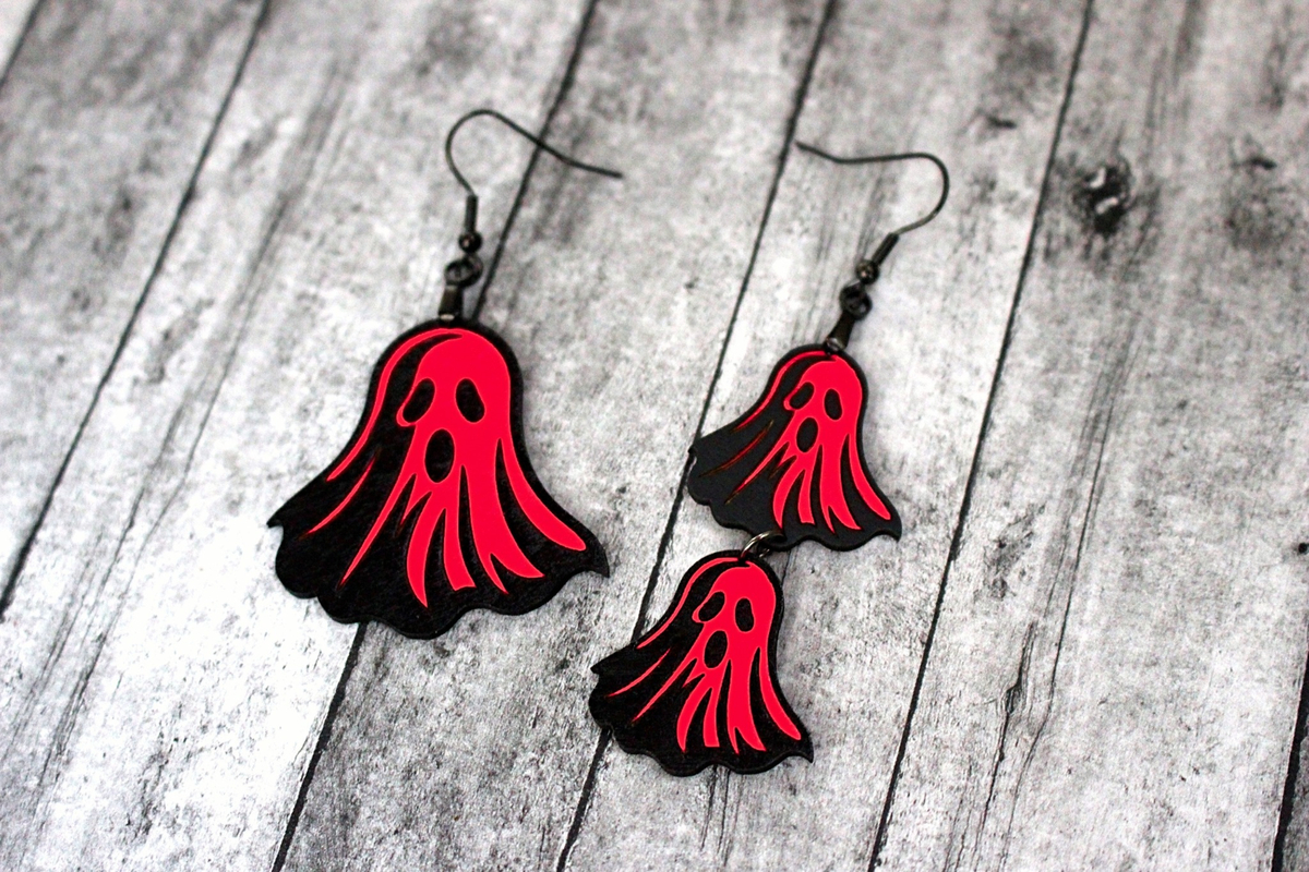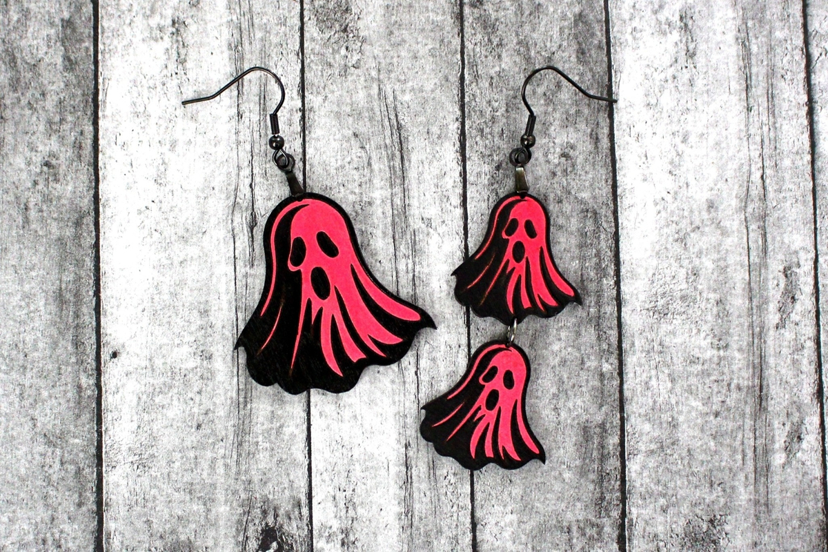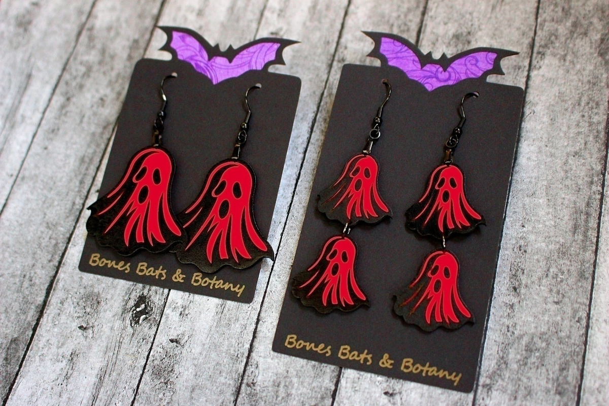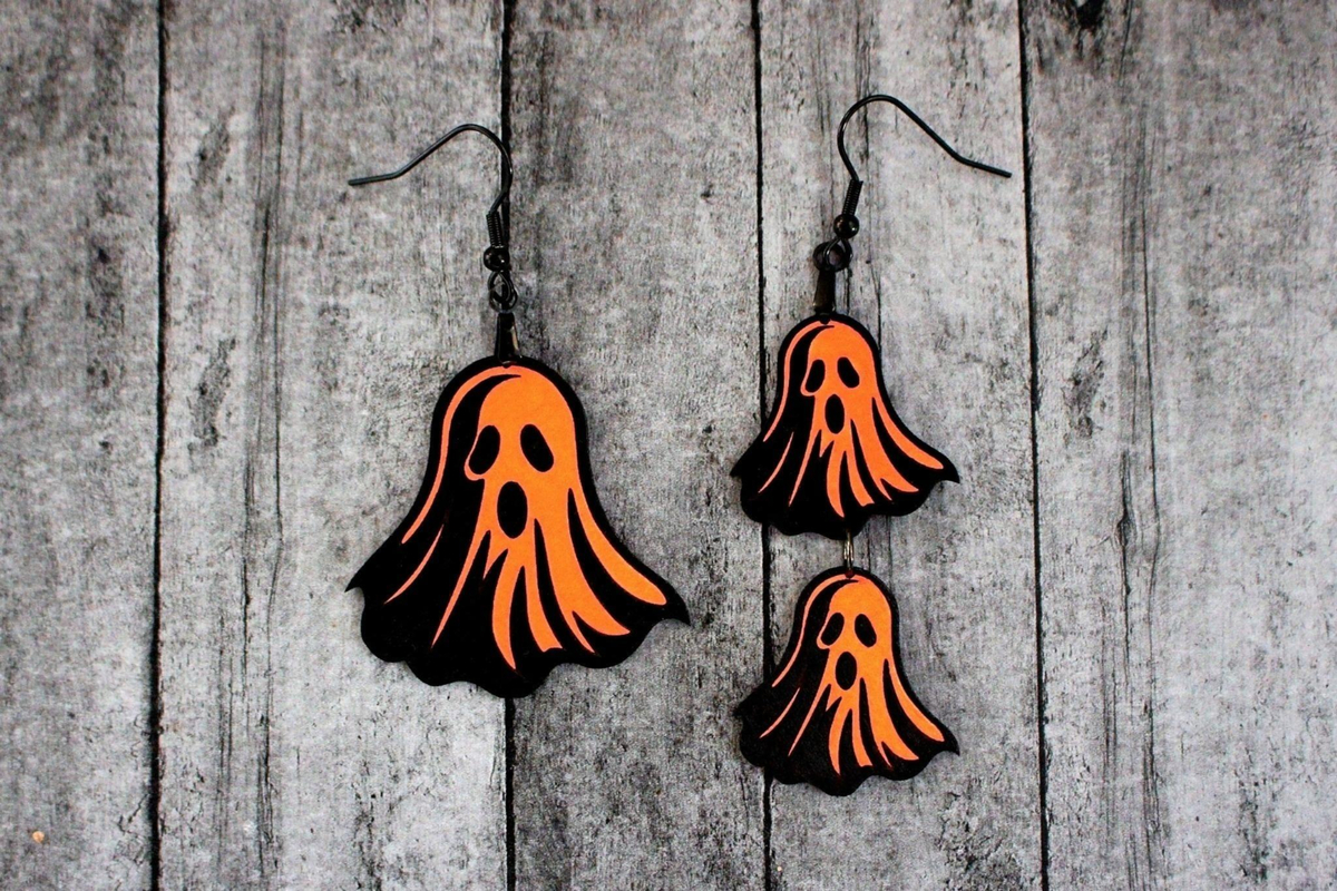 Colorful Ghost Earrings, Spooky Specter Jewelry, Handmade Halloween Accessory