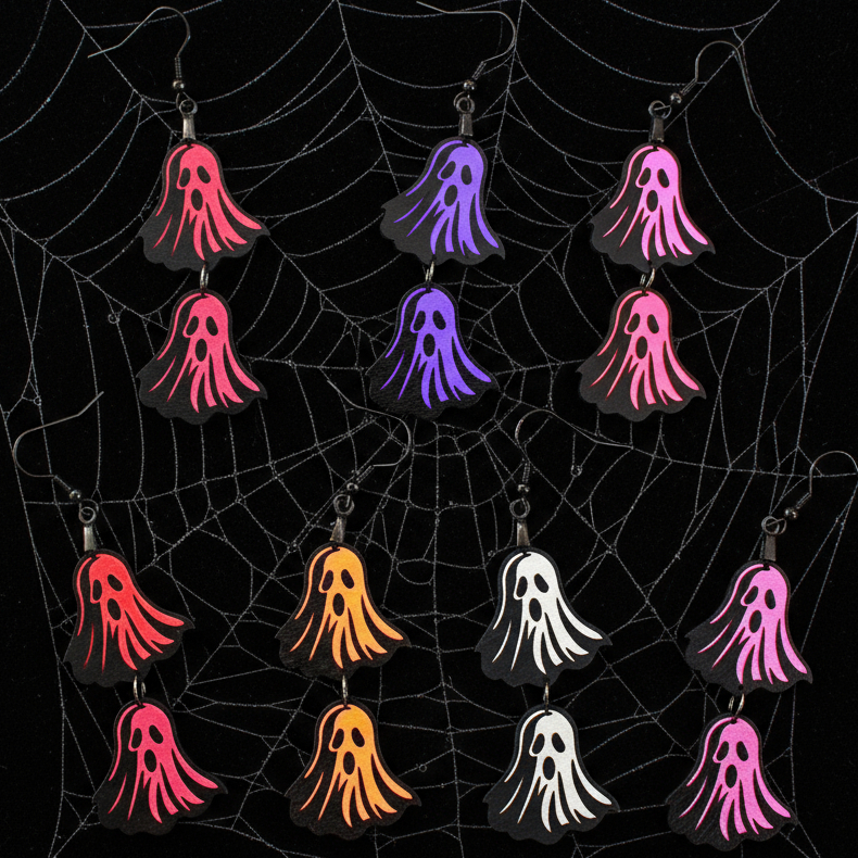 Discover a spook-tacular accessory that embodies the essence of Halloween with our ghost earrings. Embrace the playful spirit of the season in vibrant fashion, as these ethereal beauties enchant with bright colors and versatility. Available in 7 colors, each hue dances with a life of its own, creating a hauntingly beautiful palette perfect for any festive ensemble. Choose from 2 distinct styles to express your unique charm, whether you seek something cute yet eerie or bold and lively. Crafted to capture the joy of October nights, these earrings are an enchanting mix of whimsy and style, much like a moonlit costume parade and make a perfect Christmas Gift for your spooky friends. Let them be your go-to adornment this fall, illuminating your outfit with a ghoulishly delightful flair. Embrace the delight in every shade and style and prepare to captivate all who dare to look your way.