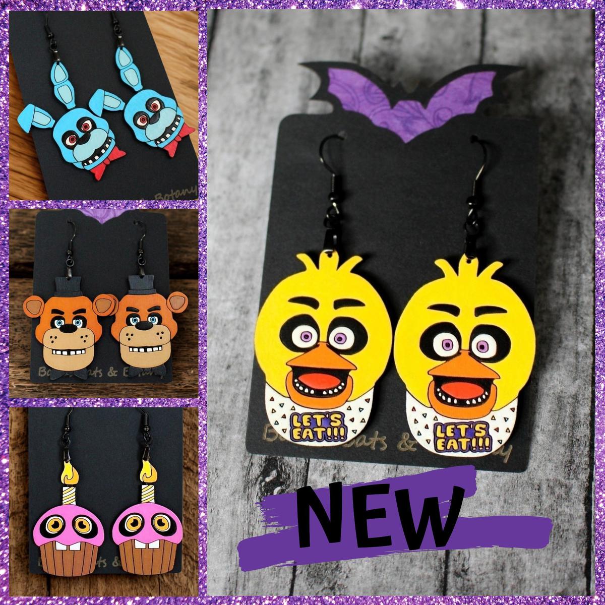 Animatronic Pizzeria Mascots, Supernatural Horror Movie Earrings, Mix and Match