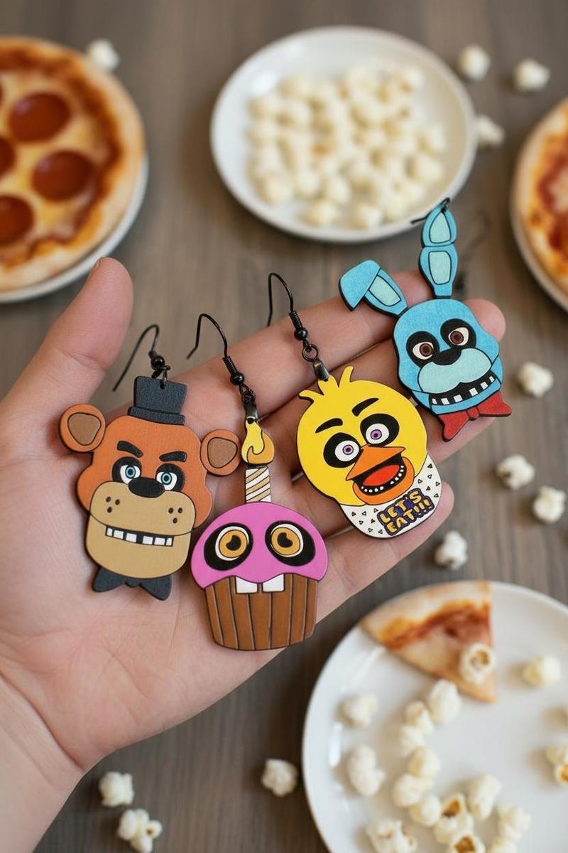 Unleash your love for this iconic universe with our Animatronic Pizzeria Mascot earrings, a dazzling homage to the unforgettable characters that captivate fans worldwide. Perfect for Christmas, each piece is a miniature masterpiece, meticulously designed to spotlight the quirky charm of these characters, capturing their unique personalities in every detail. These earrings are not just accessories but a vibrant expression of your fandom, allowing you to carry a piece of the energetic animatronic world wherever you go. Crafted with high-quality materials, the earrings offer both durability and comfort, ensuring they remain a staple in your collection for years to come. Whether you're stepping out for a casual day with friends, attending a themed event, or looking for the perfect Christmas gift for her, they add a playful sparkle that captures attention and ignites conversations. Embrace this opportunity to wear a slice of gaming history and let the spirit light up your style with a delightful nod to one of the most beloved gaming and movie franchises.