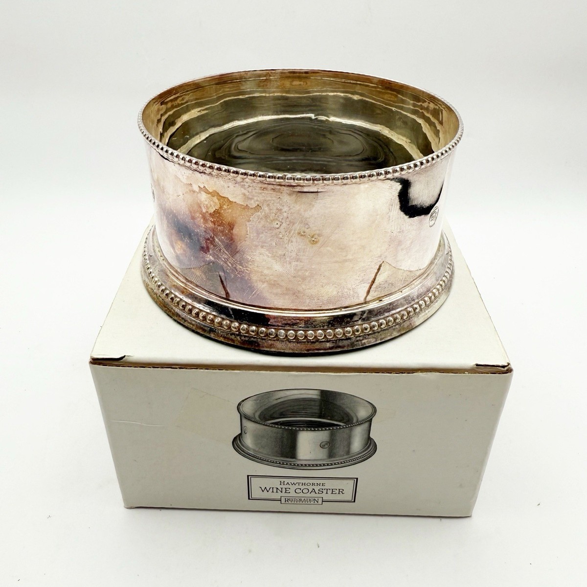 Restoration Hardware Hawthorne WINE Champagne Bottle COASTER Silver Plated