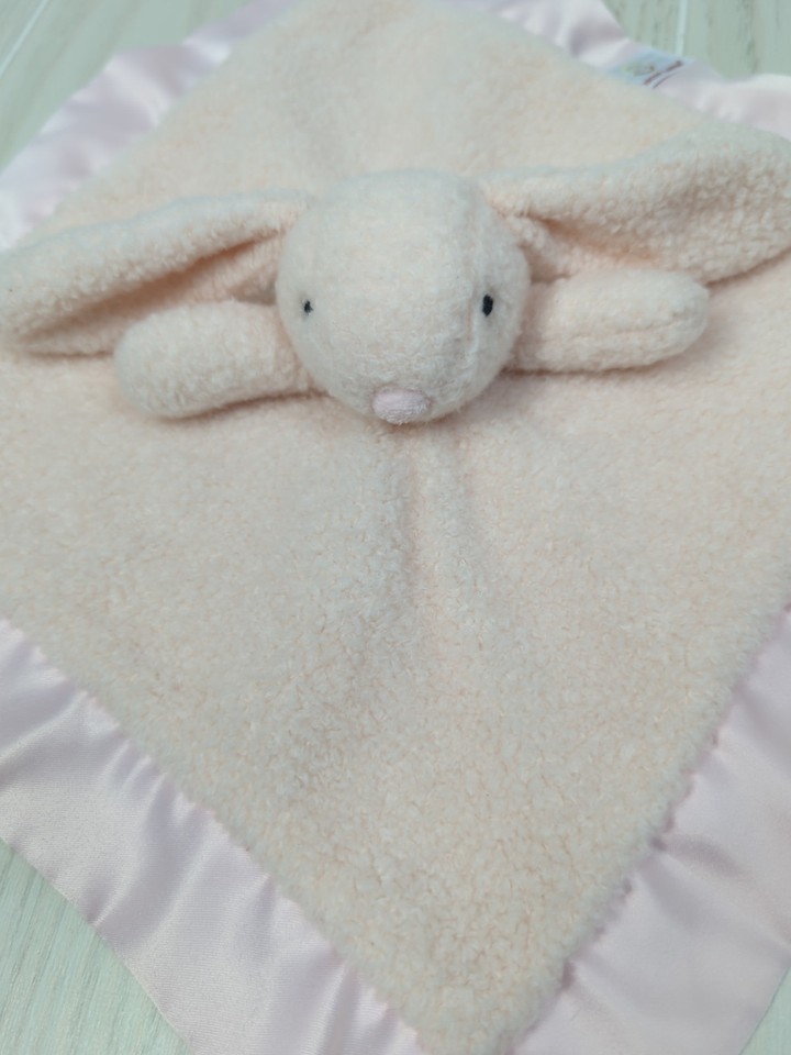 Apricot Lamb soft plush pink bunny security blanket lovey satin trim