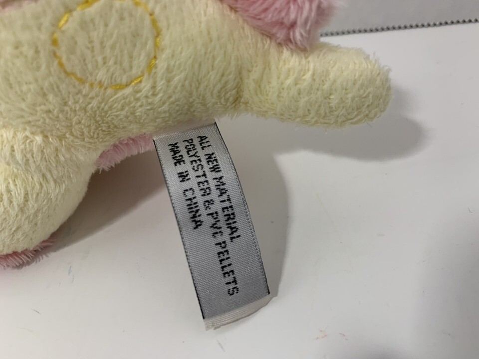 Unipak Designs small baby plush dinosaur pink yellow polka dot spotted rattle