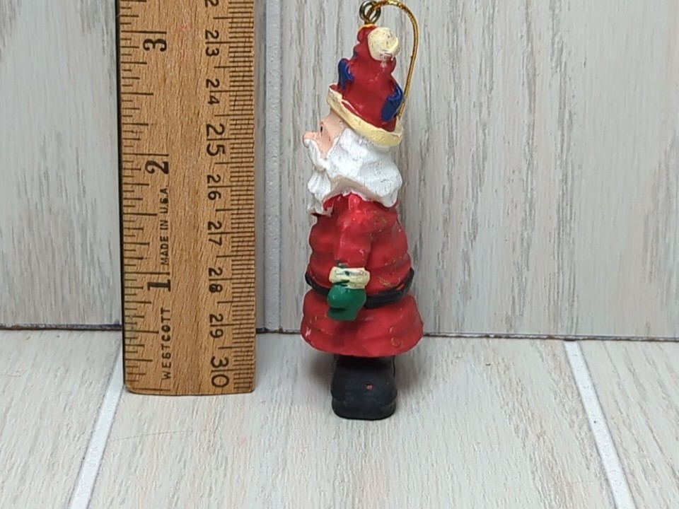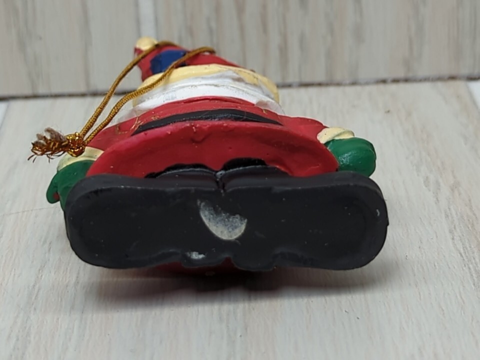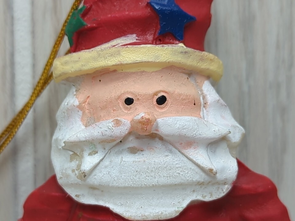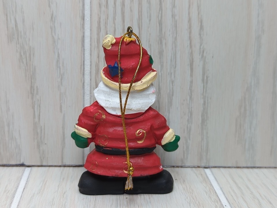 Santa Claus crinkle wood look red gold swirls Christmas Tree Ornament