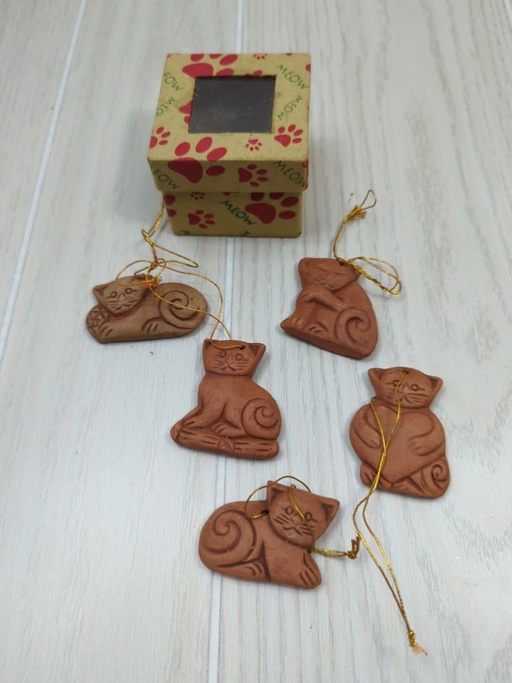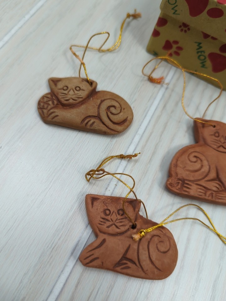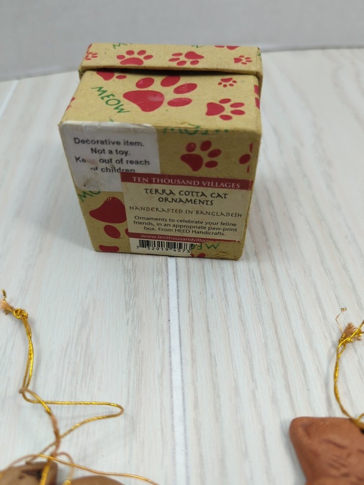 Ten Thousand Villages terra cotta 5 mini cat ornaments artisan made handcrafted
