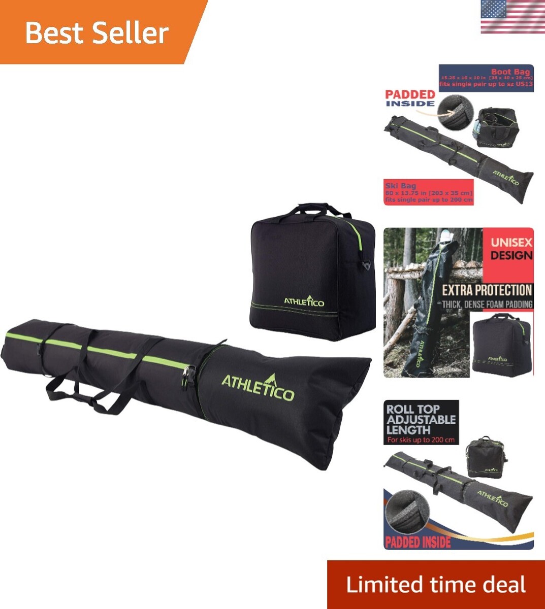 Two-Piece Ski and Boot Bag Combo | Store Transport Skis Up to 200 CM and Boots Up To Size 13 | Includes 1 Ski Bag 1 Ski Boot Bag
