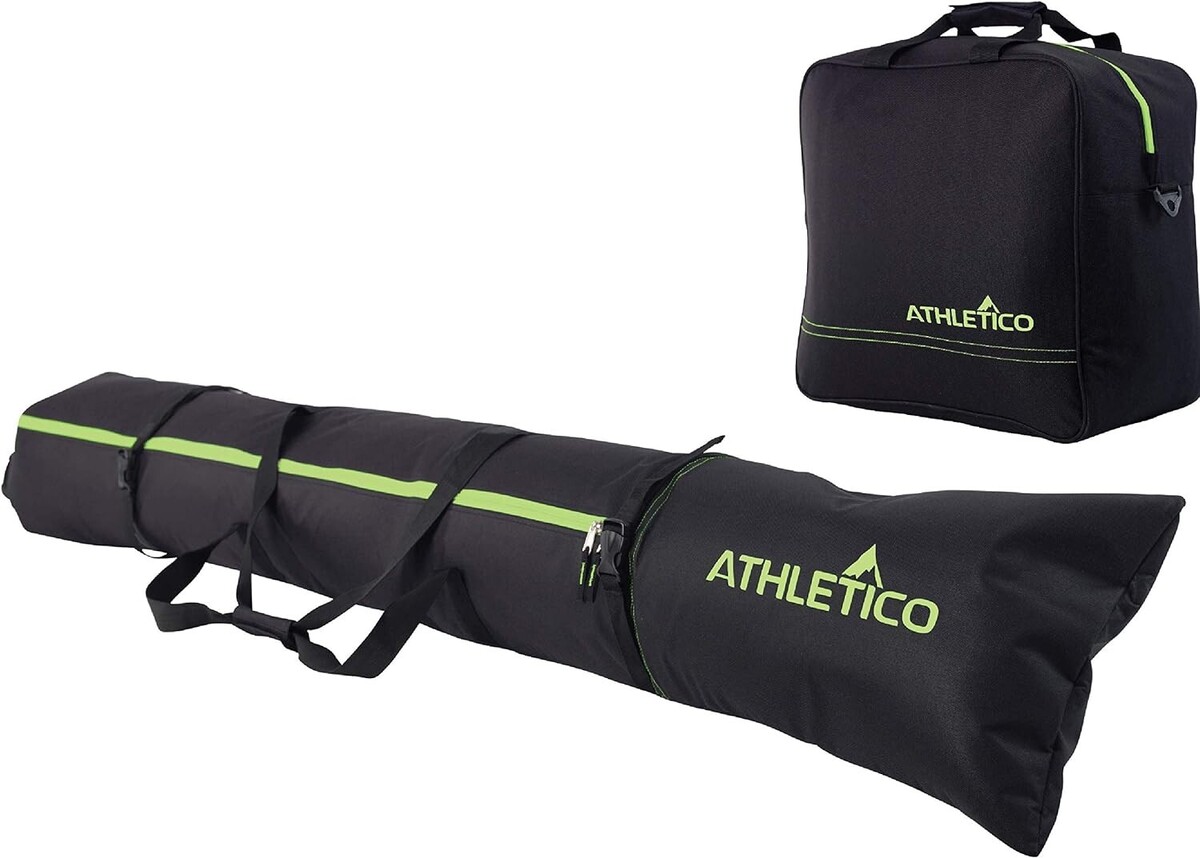 ? FITS MOST STANDARD SIZED EQUIPMENT - The padded ski sleeve will fit most skis up to 200 cm in length. Roomy enough to pack your cap, pants, gloves, or goggles inside as well. Unique roll-top design allows you to reduce the length for shorter skis. The boot bag will fit most ski boots up to size 13.