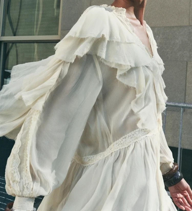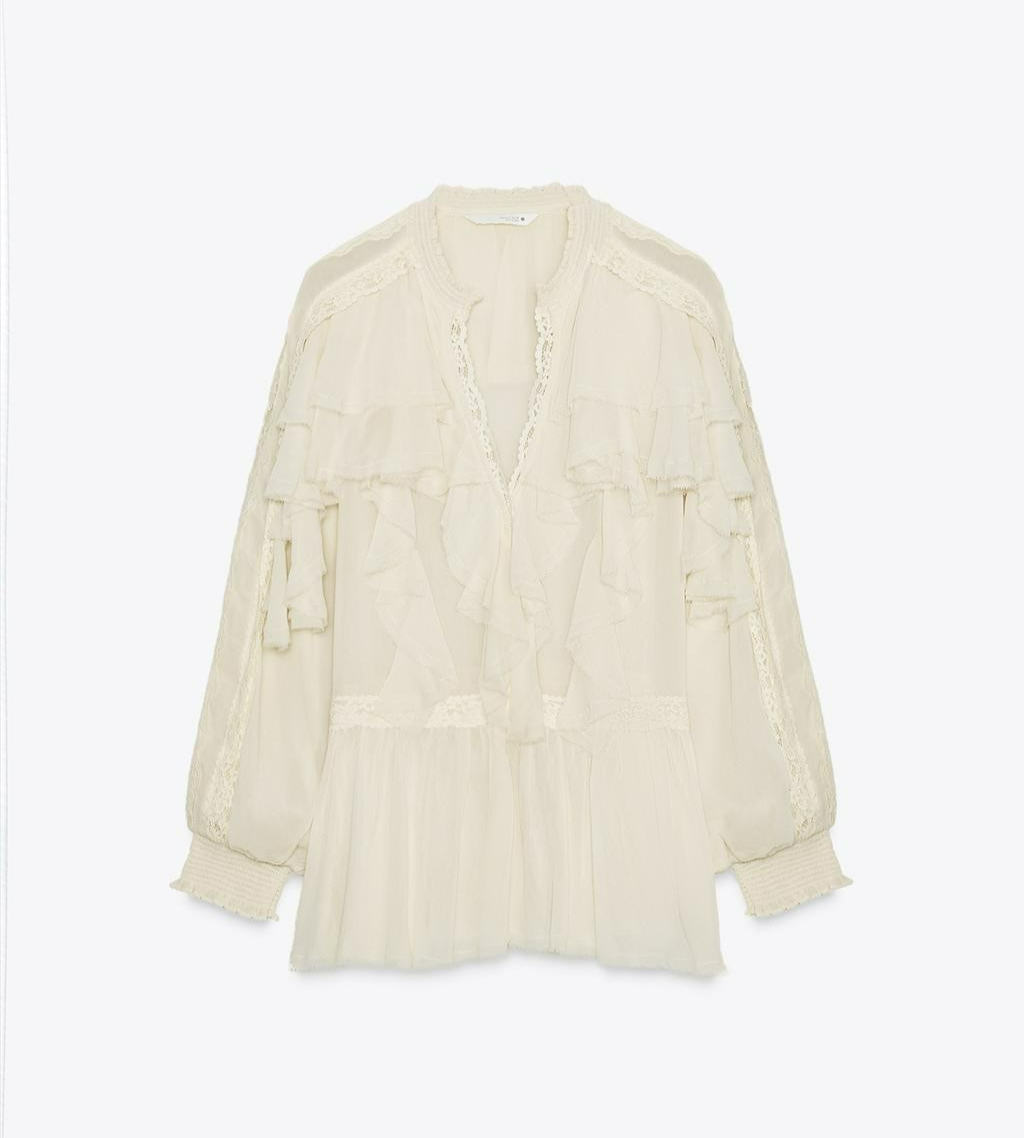 ZARA ZW COLLECTION LACE RUFFLE BLOUSE -M