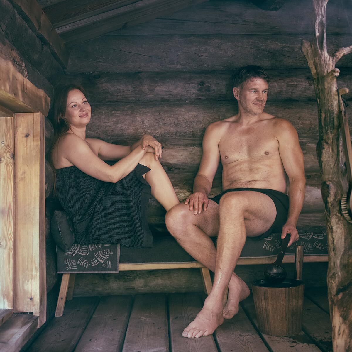 Add some Rento sauna scent to a sauna bucket and throw water on a hot sauna stove for aromatic steam.