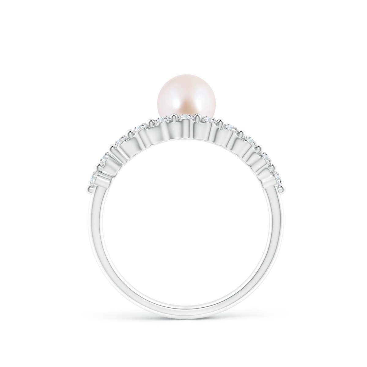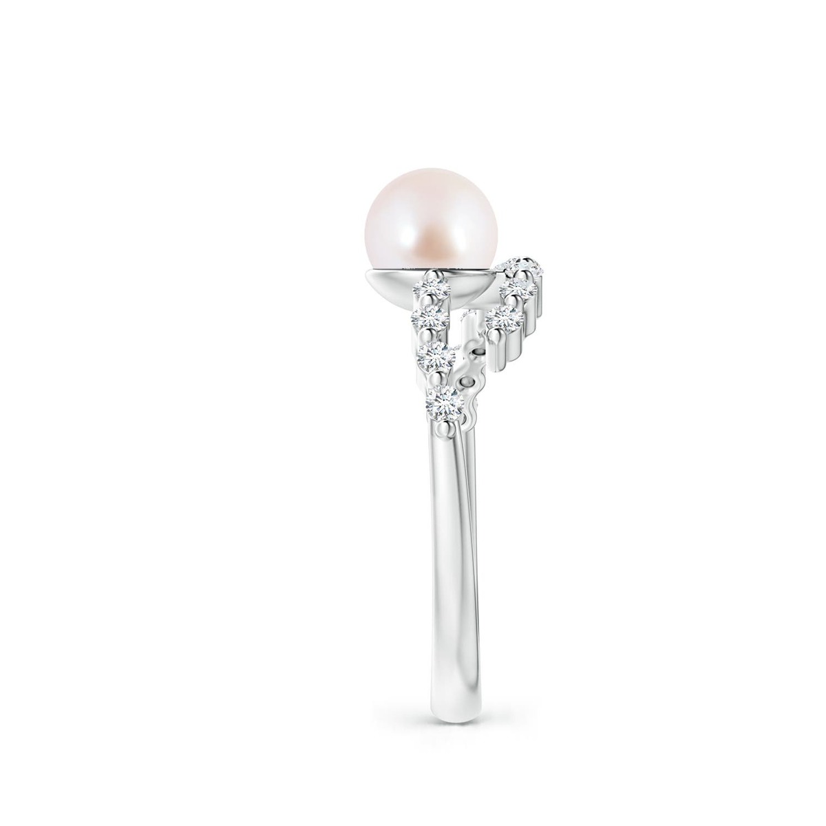 This 14K Solid Gold solitaire ring is adorned with an Akoya cultured pearl that looks fascinatingly beautiful. Diamond accents on the bypass shank add to the allure of the pearl.