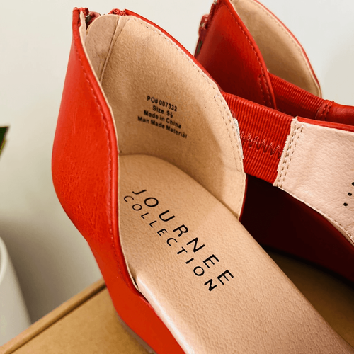 JOURNEE COLLECTION Aretha d'Orsay Wedge Sandal, Vegan Leather Rust, 9.5, NWOB