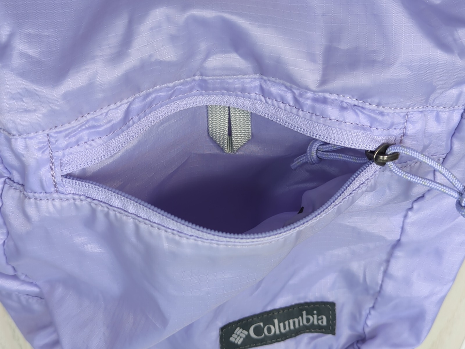 Columbia Packable pocket backpack light purple lavender gray straps