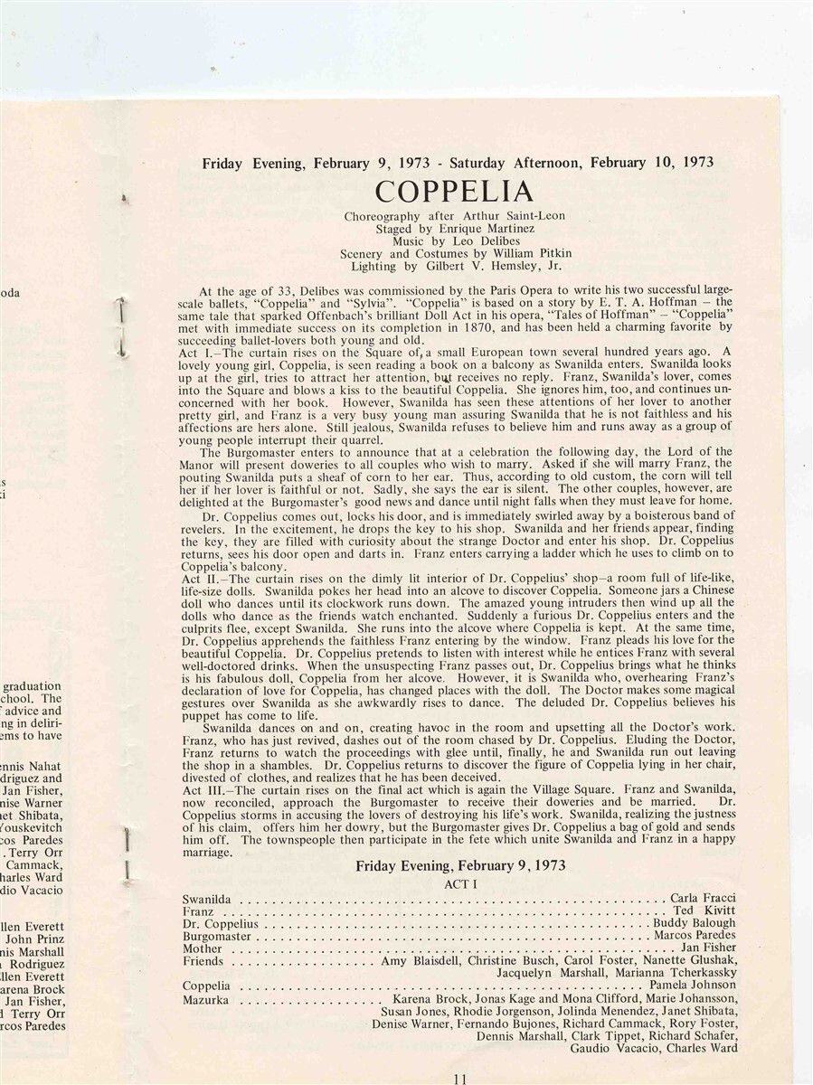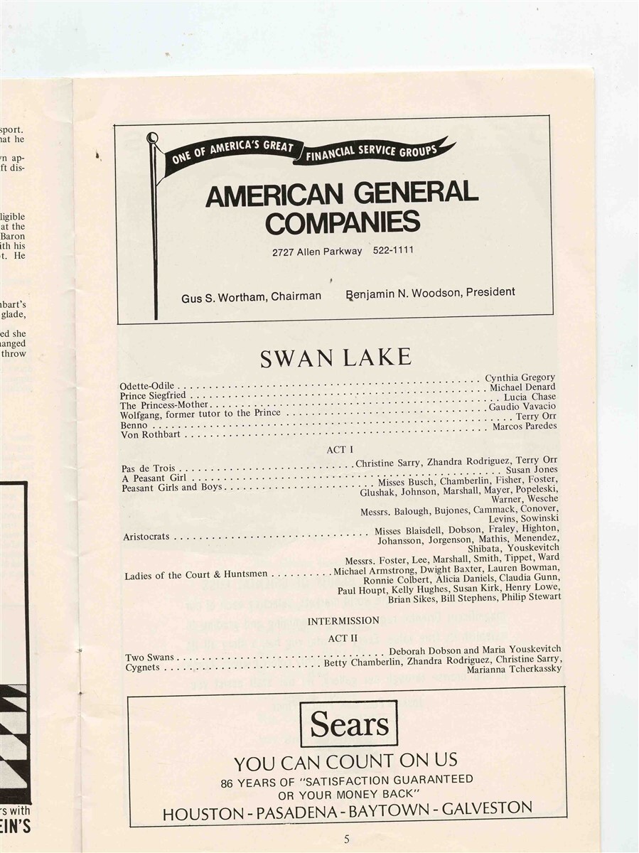 American Ballet Theatre Program from 1973. Includes Swan Lake, Les Sylphides and Coppelia. From performances in Houston Texas