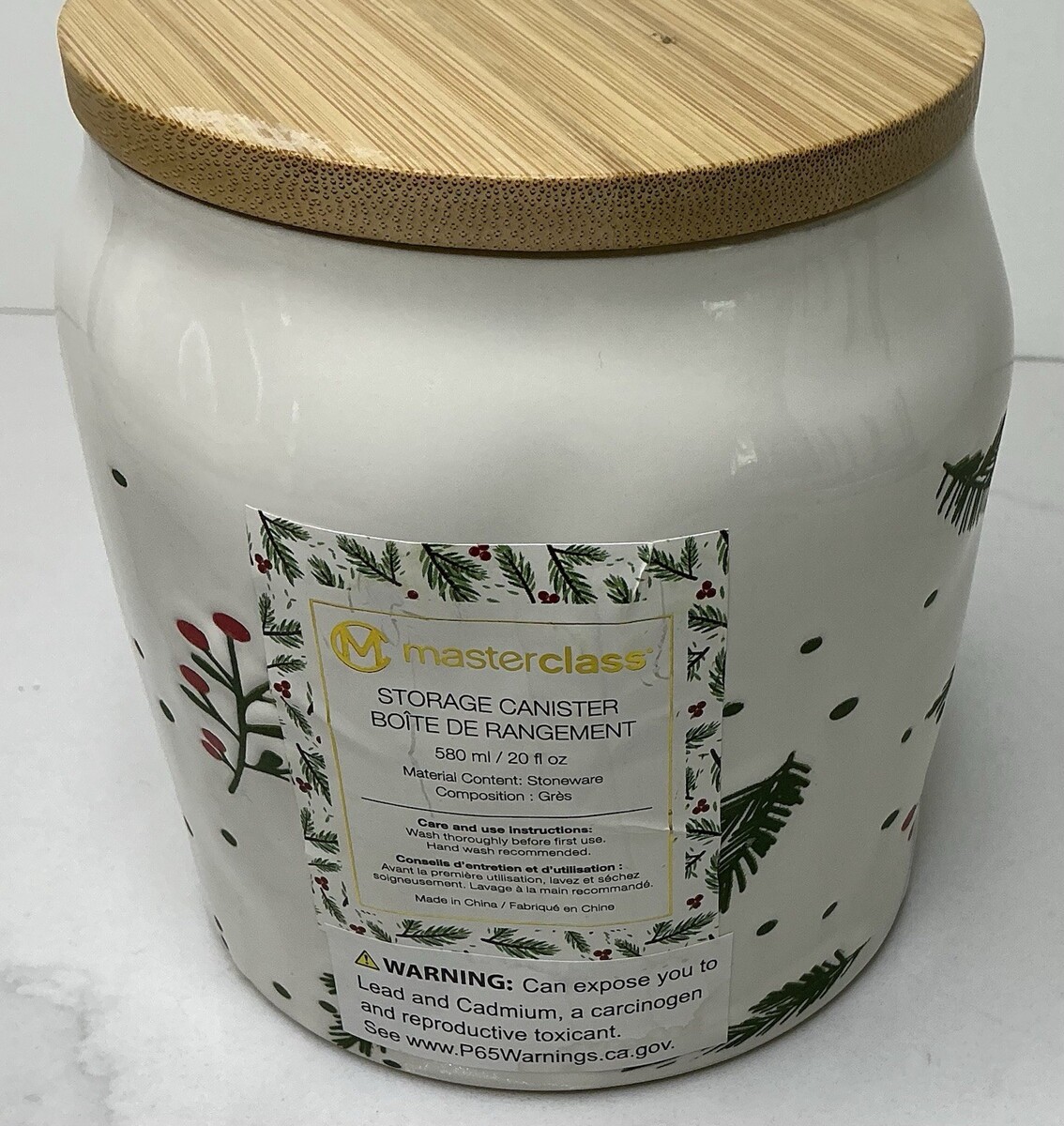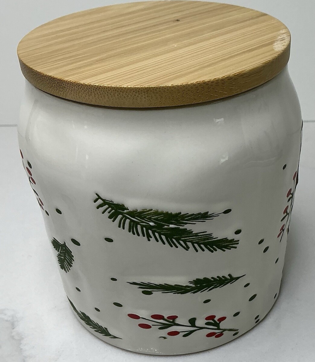 Master Class White Winter Pine & Berry Ceramic Cookie Jar Canister- NEW