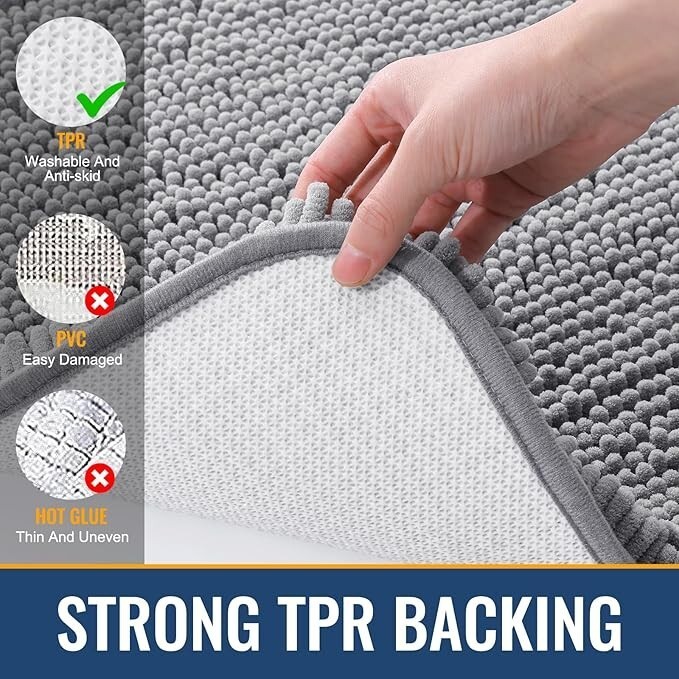 Non-Slip TPR Backing: Our bathroom mat features a textured rubber backing that provides excellent grip on bathroom tiles, ensuring safety. Important: Place on CLEAN DRY FLAT FLOOR ONLY to avoid slipping. Keep the rug's bottom dry at all times.