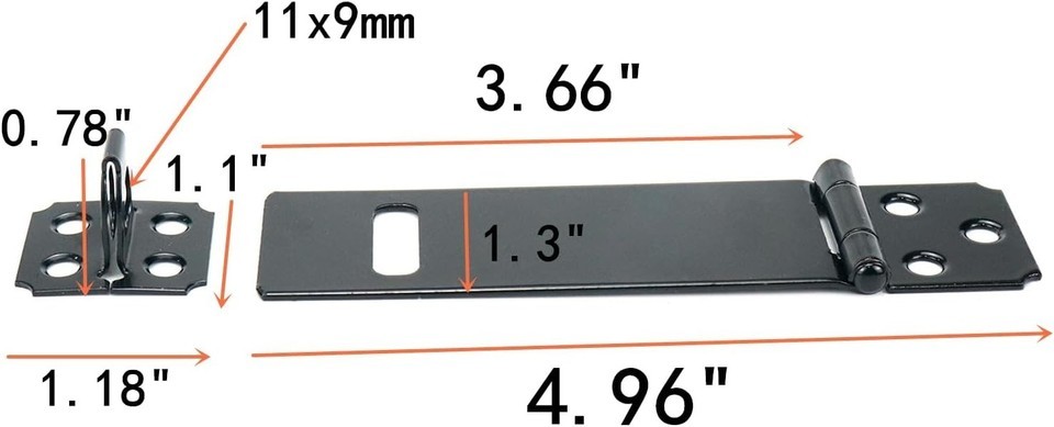 4Pcs 4Inch Black Padlock Hasp,Door Slide Latch Lock Black Painted Iron Lock