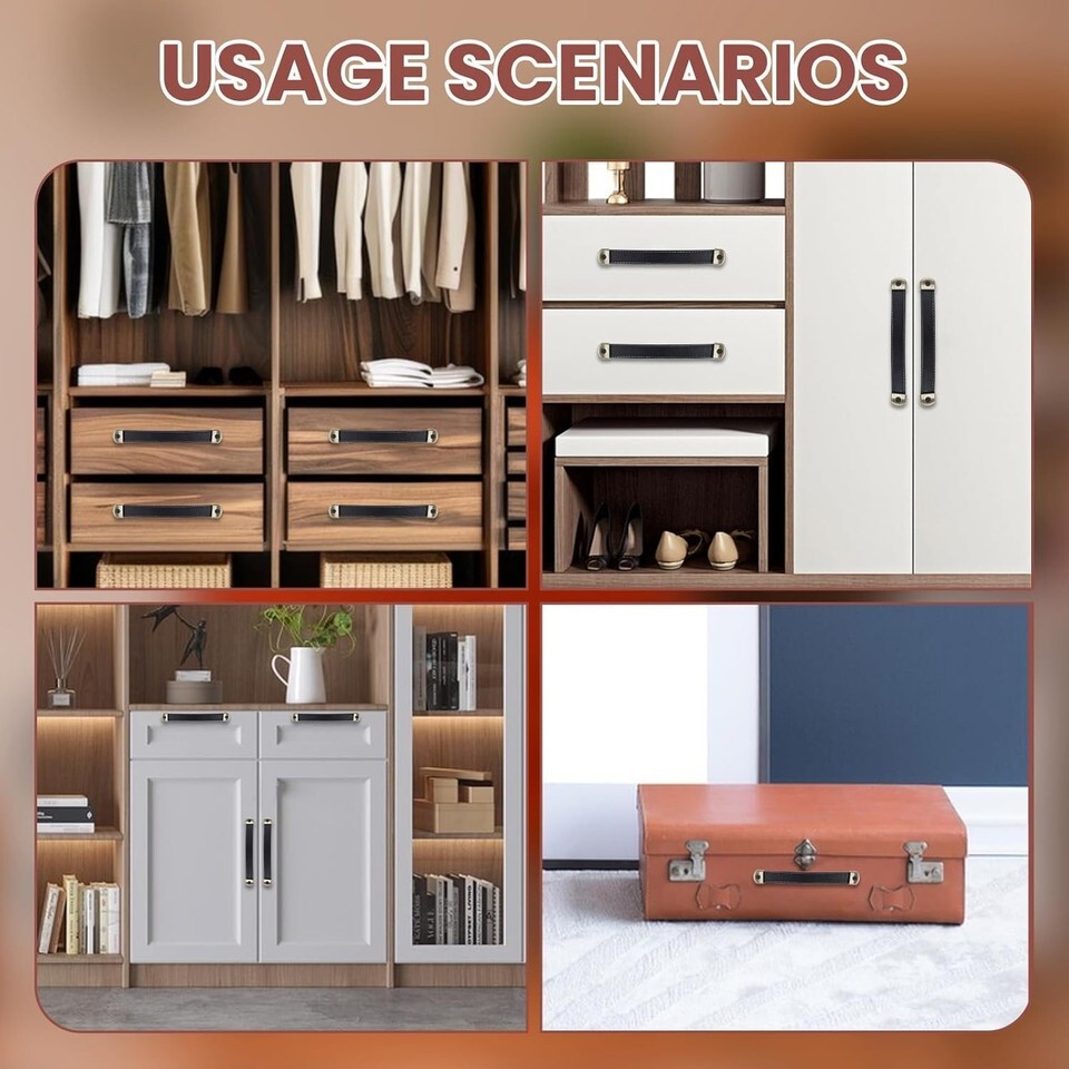 Versatile Use: These leather luggage handles can be used on luggage, cabinets, closets, lockers and other furniture. They can add a touch of elegance to your furniture.