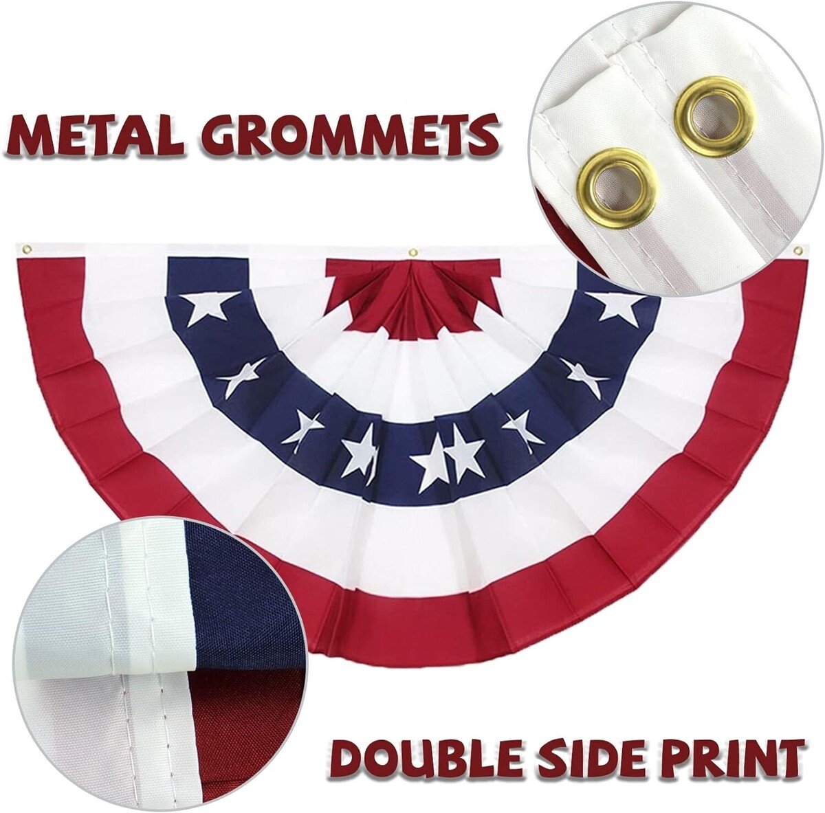 Fine Craftsmanship: American Pleated Fan Flag made of polyester, with precision lock stitching to ensure that it will look perfect, very strong and durable. It stayed put perfectly even in heavy winds. And includes 3 heavy-duty brass grommets, which make it easy for attaching and fixed from being torn apart.