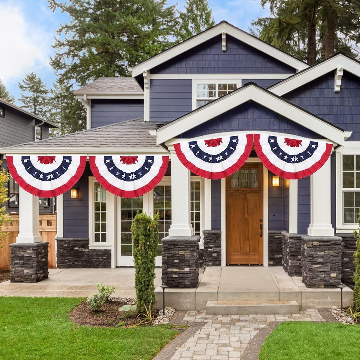 Show Your Patriotism Use our Pleated Bunting Fan Flag to show any national holiday, Labor Day celebration, Veteran's Day events and annual 4th of July events. Can be used as outdoor decorative flag, seasonal outdoor flag, patriotic house flag.
