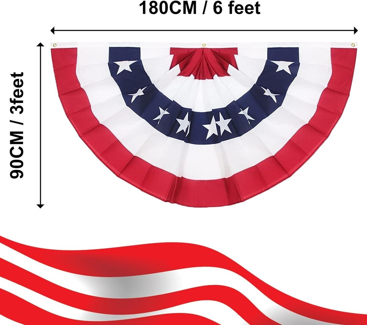 American Pleated Fan Flag,3 X 6 Ft Patriotic Flag Bunting Half Fan Banner De...
