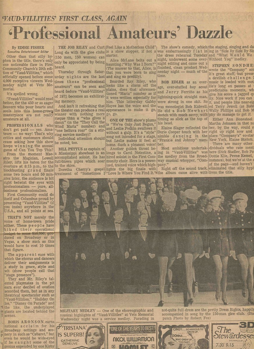 There are 3 items in this lot. 2 Vaud Villities Programs , one form 1969 and the other from 1971 . From performances at the Veterans Memorial Auditorium in Columbus Ohio . Lots of information on the Casts, Glee Club, Staff, local ads and much more. Plus a newspaper clipping reviewing one of the shows.