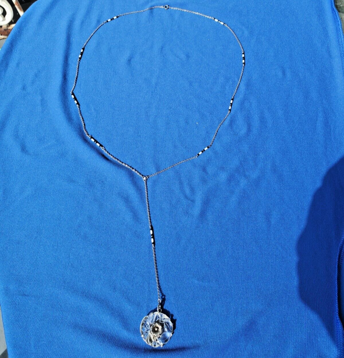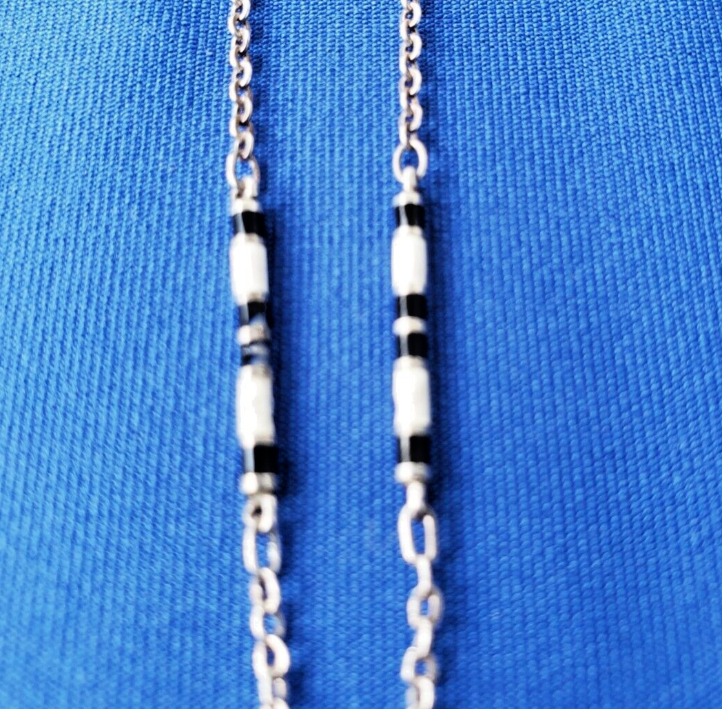 Amazing Deco Guilloche Enamel Sterling 925 Necklace Antique Gatsby era Chain 24"