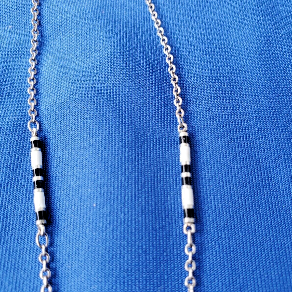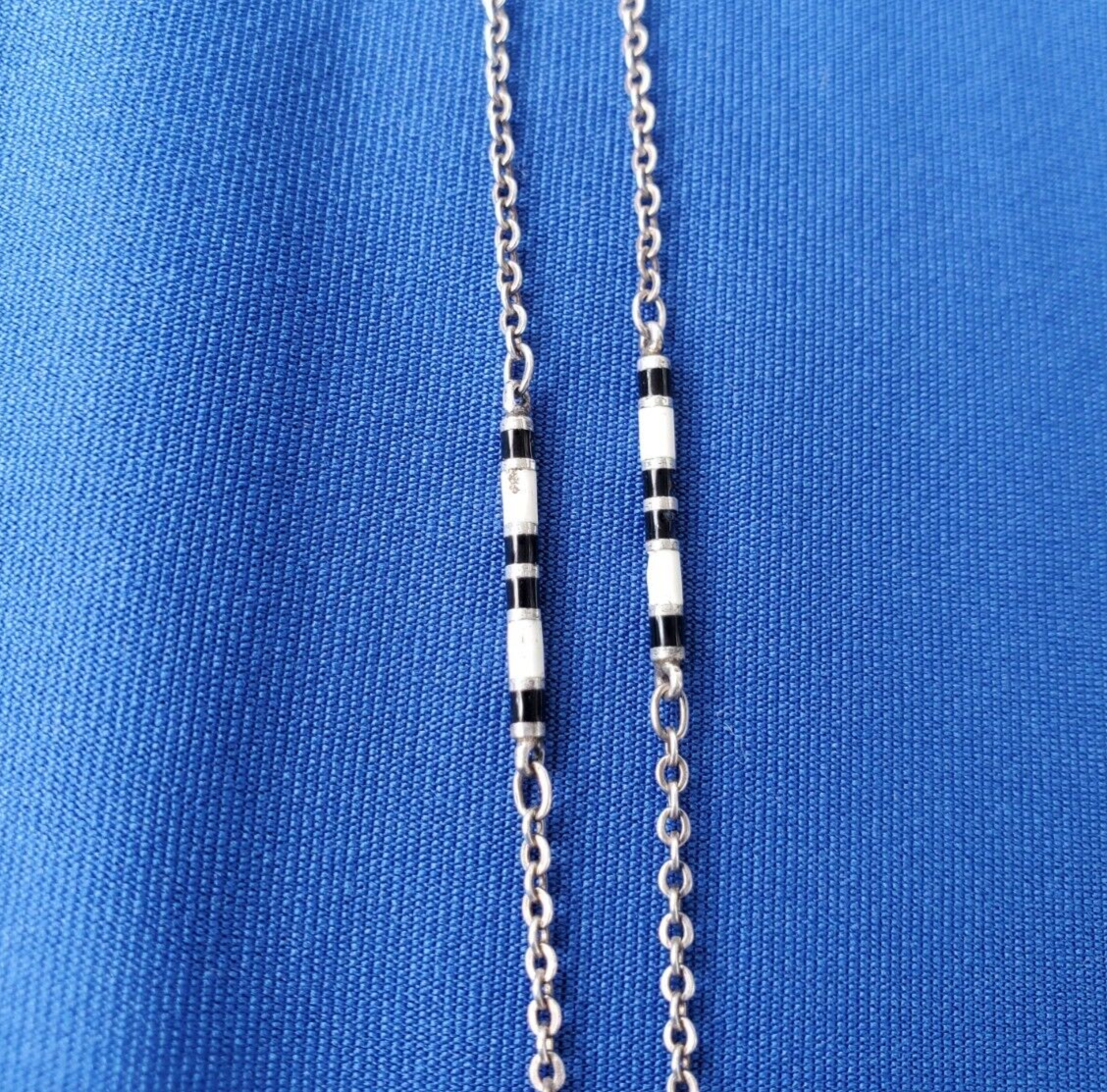 Special roaring 20s multi color white and black guilloche enamel chain.
