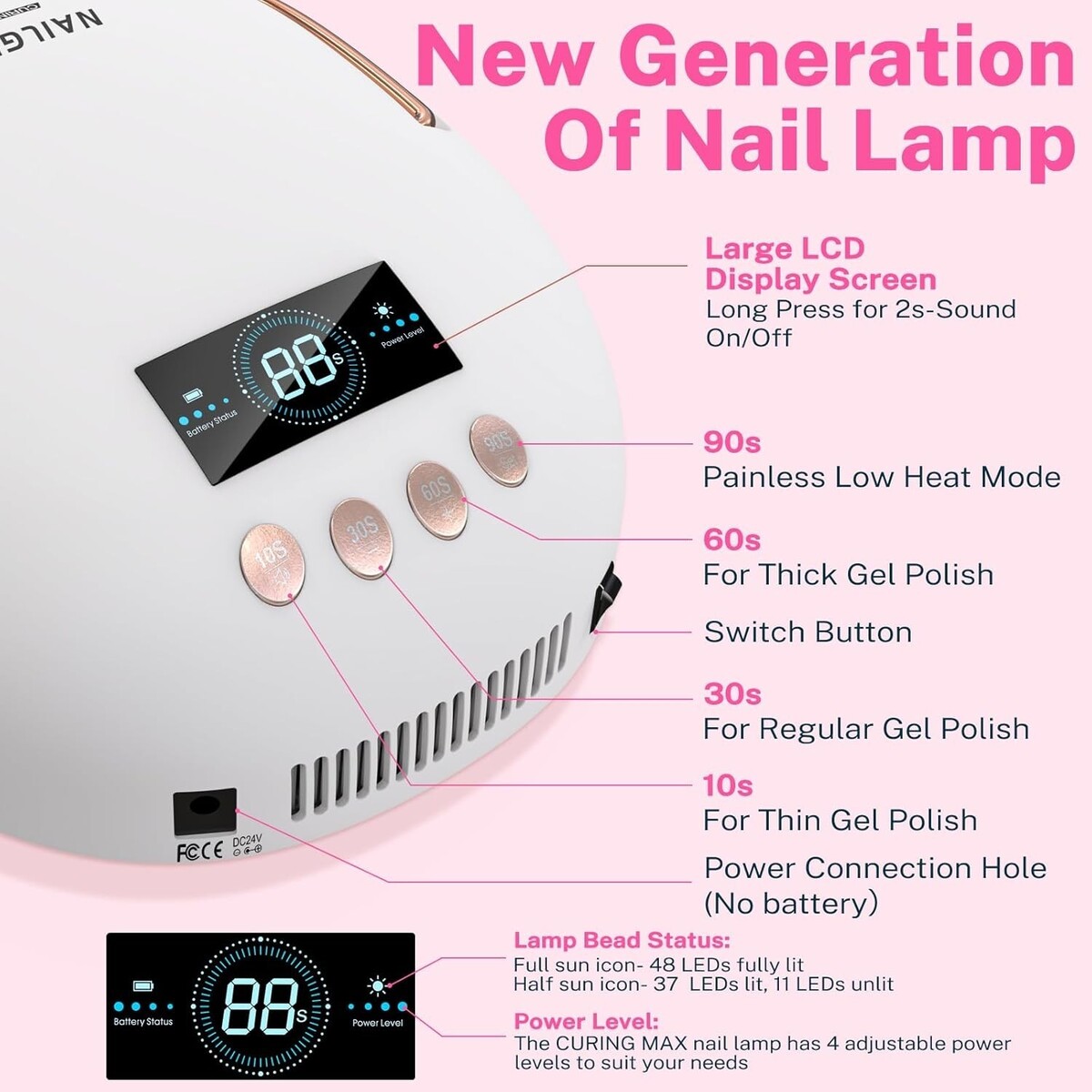 Fast curing with 48pcs dual light source industrial-grade lamp beads.