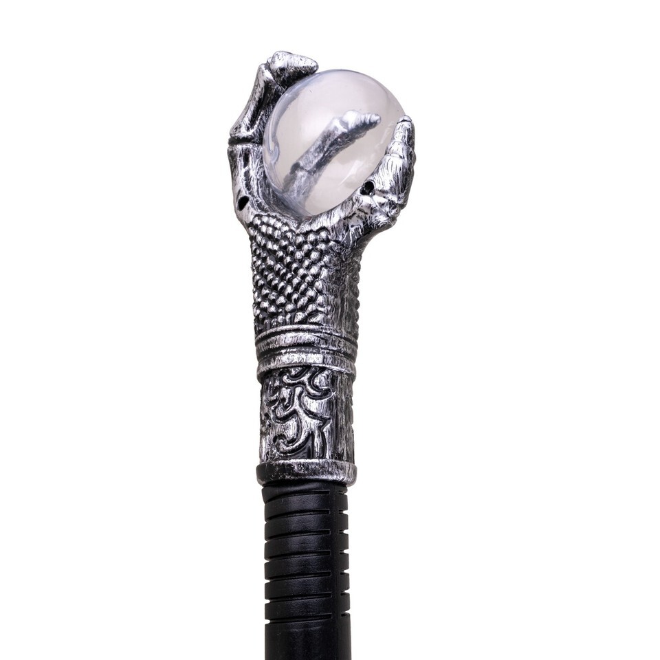 The cane features a distinctive claw and ball design, reminiscent of the legendary staff wielded by iconic sorcerers. Manufactured in China, this item promises both quality and authenticity, making it a must-have for enthusiasts and collectors alike. Whether for a theatrical production or a spooky event, this cane is sure to elevate your character's mystique.