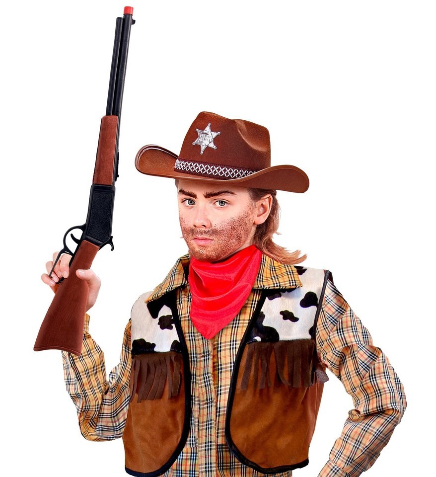 Capture the spirit of the Wild West with this authentic 61cm Cowboy Western Rifle, crafted by the renowned Widmann. A perfect addition to any cowboy or western themed costume, this replica weapon boasts intricate details and a classic brown finish, mirroring the aesthetics of the era with remarkable accuracy.