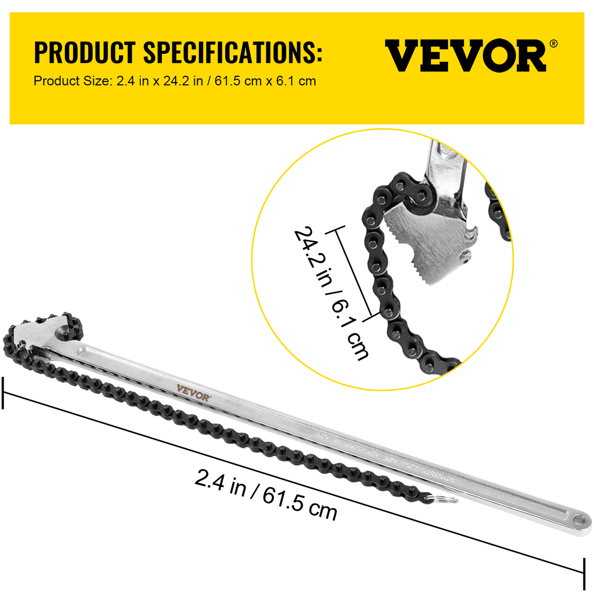 VEVOR 24inch Chain Wrench Carbon Steel Chain Pipe, 6.7 inch Diameter Capacity