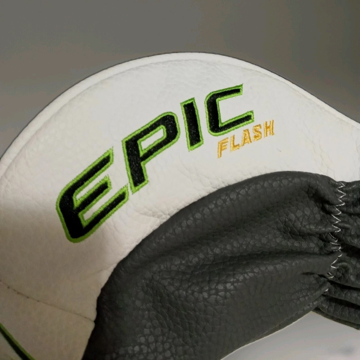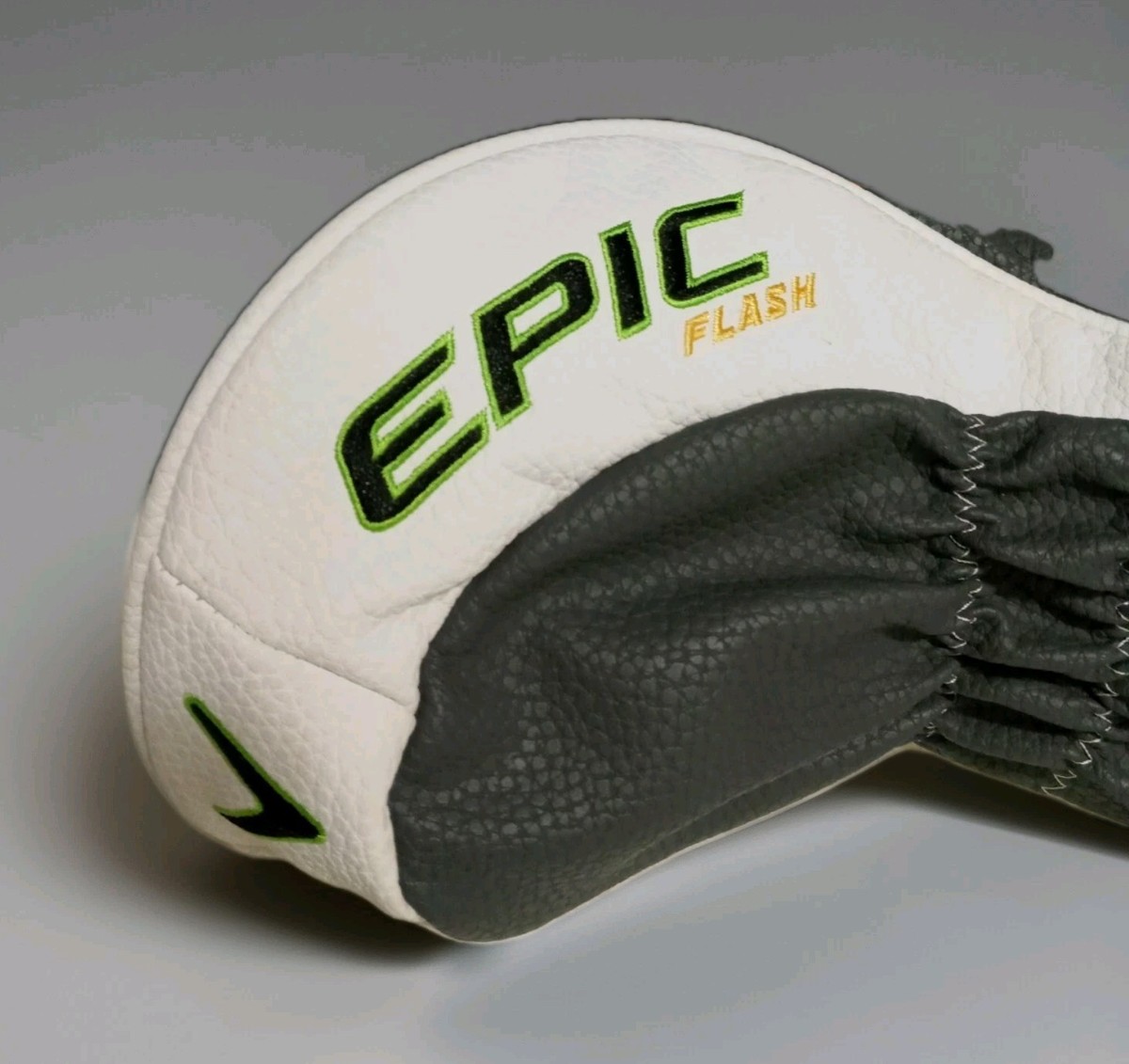 The Callaway Golf Epic Flash Driver Head Cover in green features a sleek design specifically made for the Epic Flash driver model.