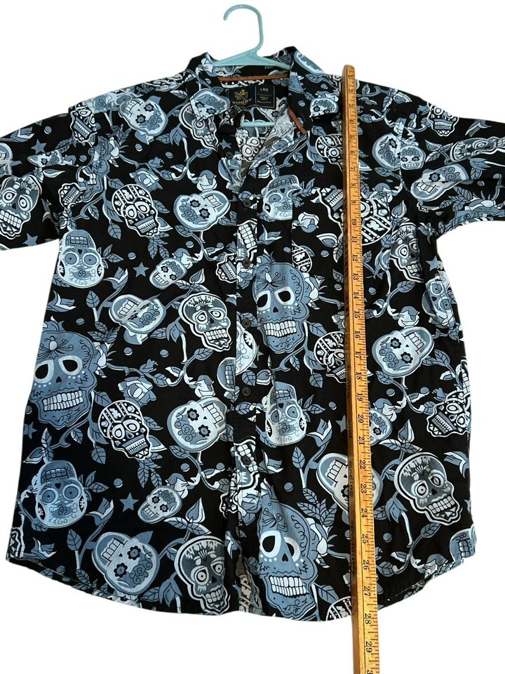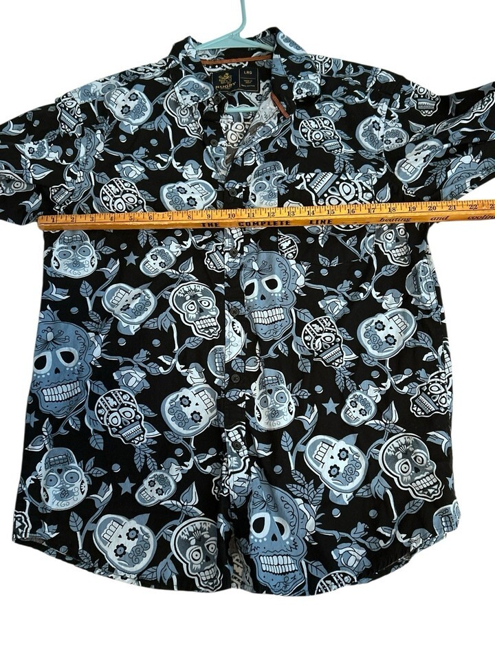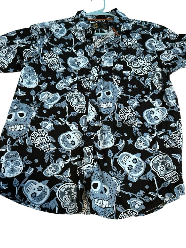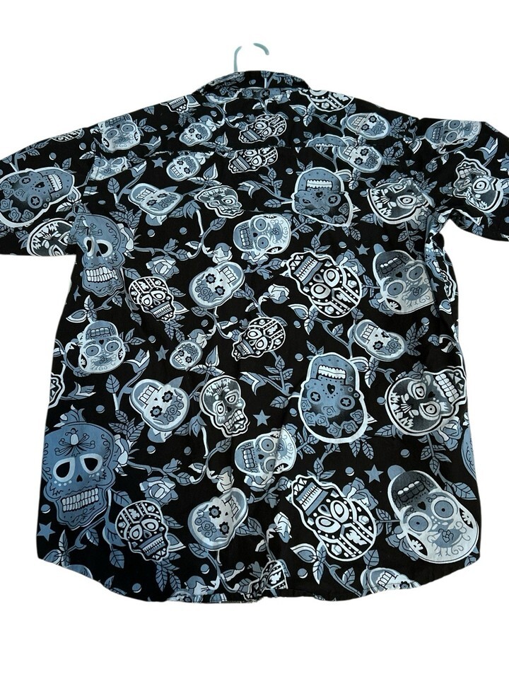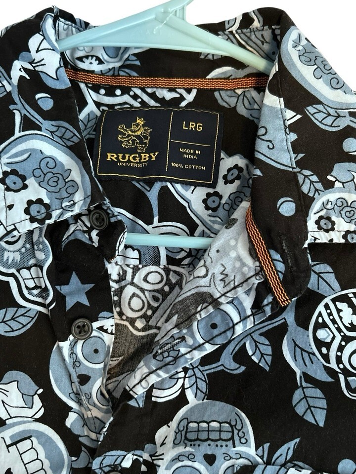 Rugby University Skulls Button Down Shirt Large Halloween AOP Black Blue