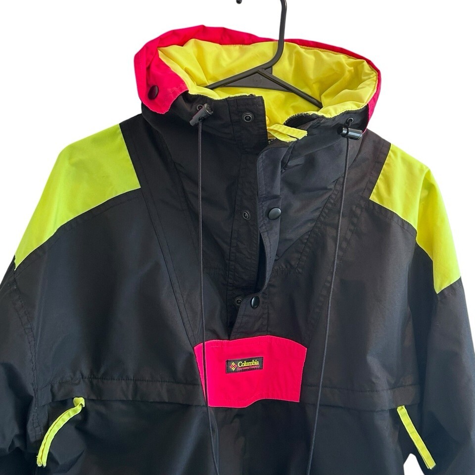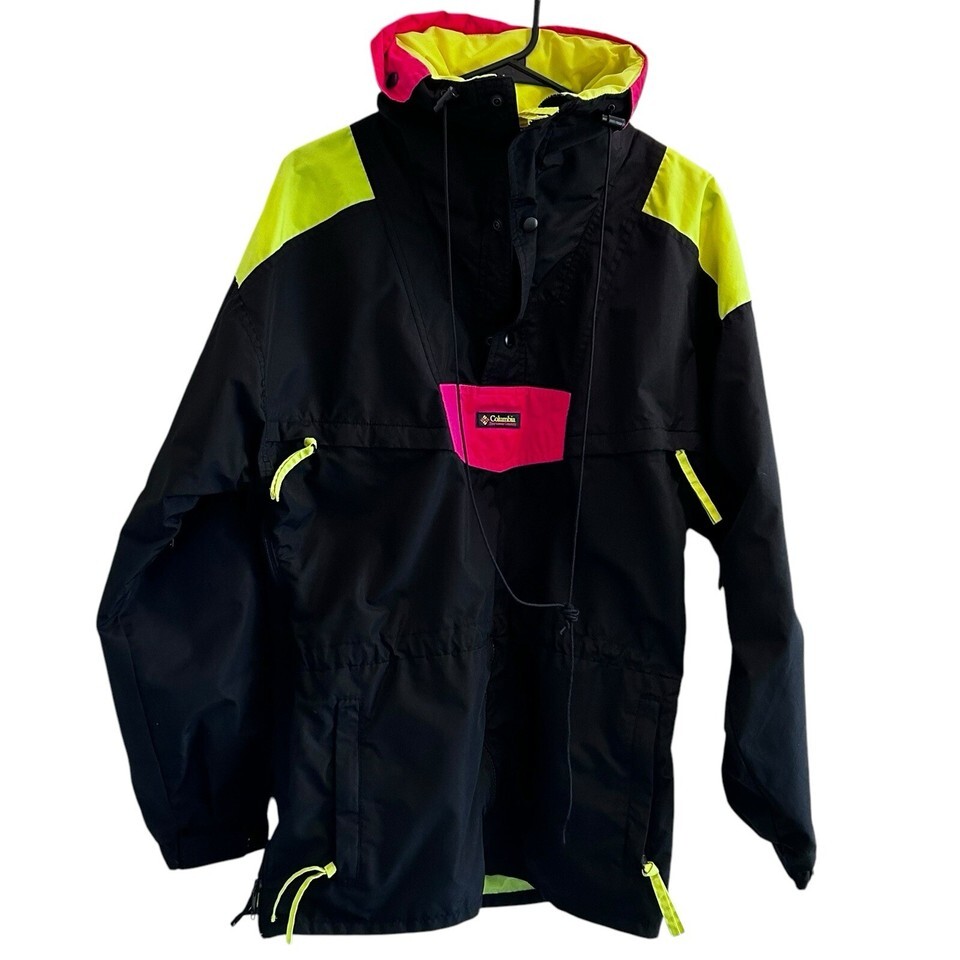 Vtg Y2K Columbia Jacket Windbreaker Colorblock Blk Neon Pink Pullover M Hip Hop