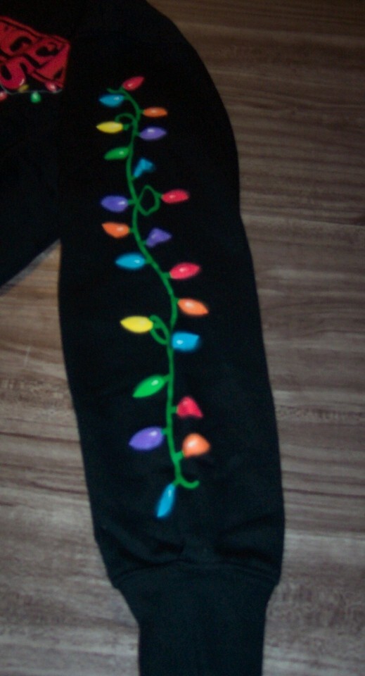 This is a Vintage Style WOMEN'S TEEN STRANGER THINGS CHRISTMAS LIGHTS Crew Sweatshirt. It is a Size LARGE and is NEW with the Tag. It is 21 inches from armpit to armpit and 22 inches in length. Fabric is SUPER SOFT. This is a Skimmer T-shirt so it is made to be shorter and not hang down over the waistline. The bottom edge is unhemmed to give it a vintage style. Combine auctions to save on shipping. AG