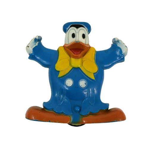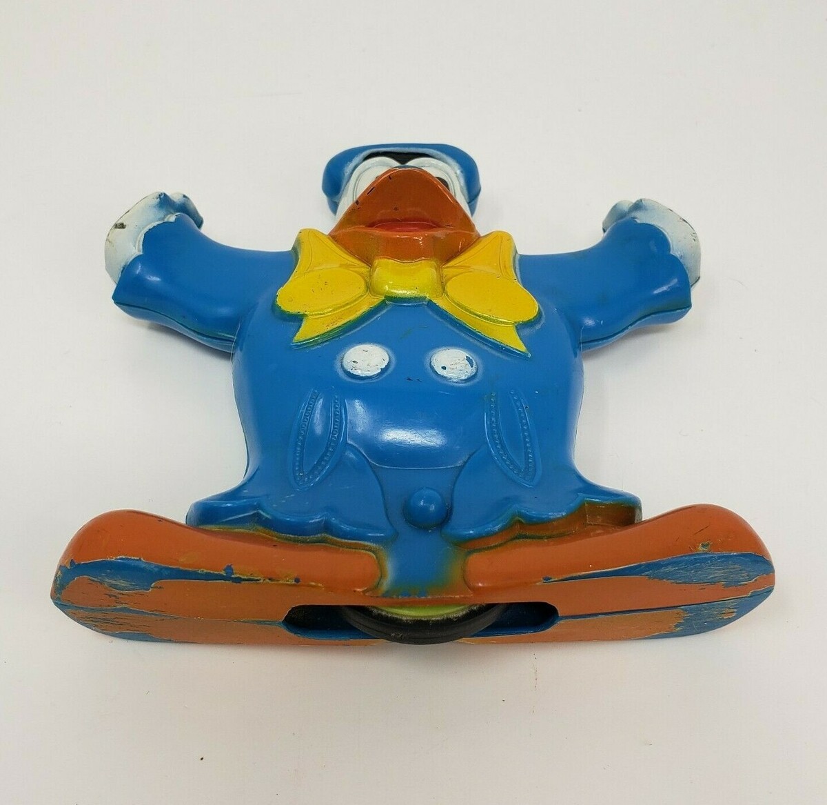 4" VINTAGE CRAGSTAN DISNEY SPINOUT CARTWHEEL DONALD DUCK PLASTIC TOY HONG KONG