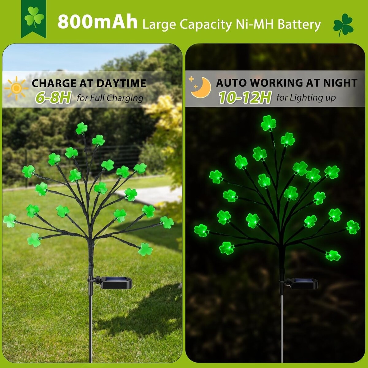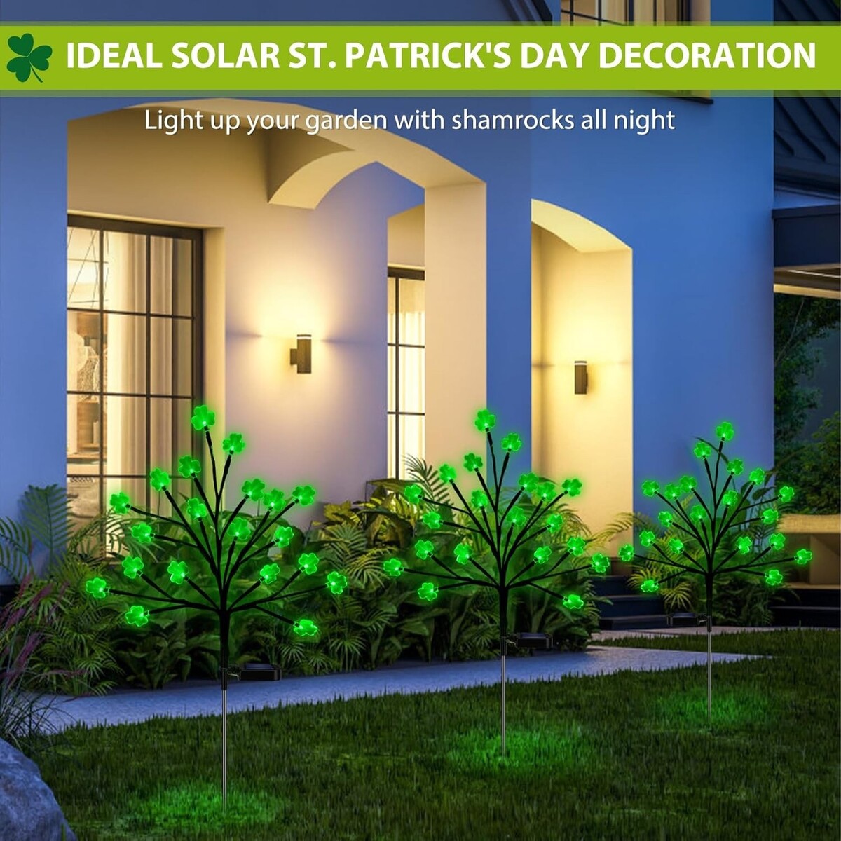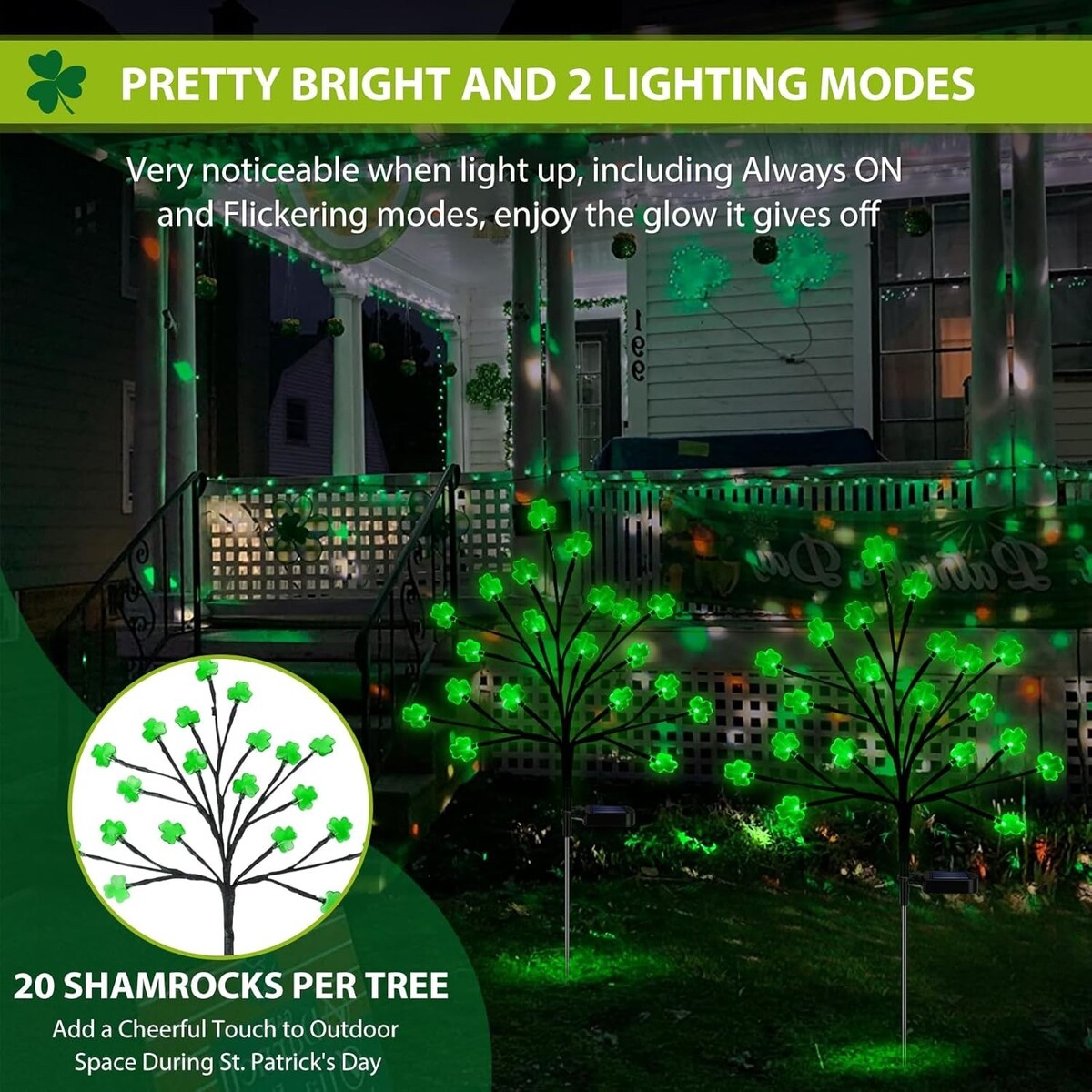 Set of 2 Solar Shamrock Stake Lights St Patricks Day 40 Green Clovers Yard Decor