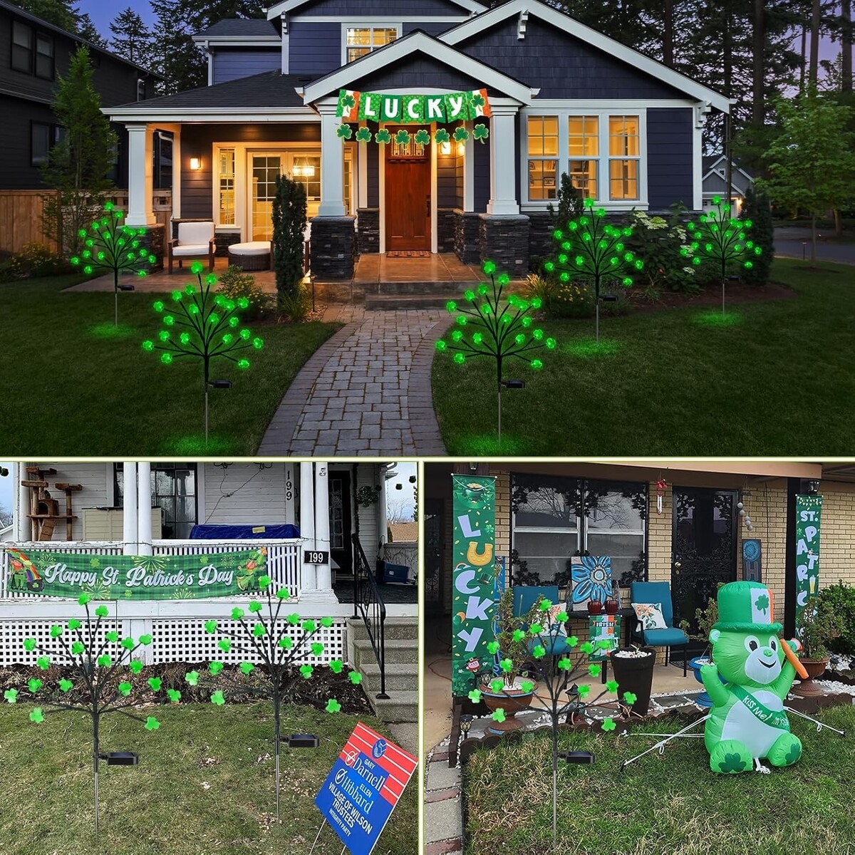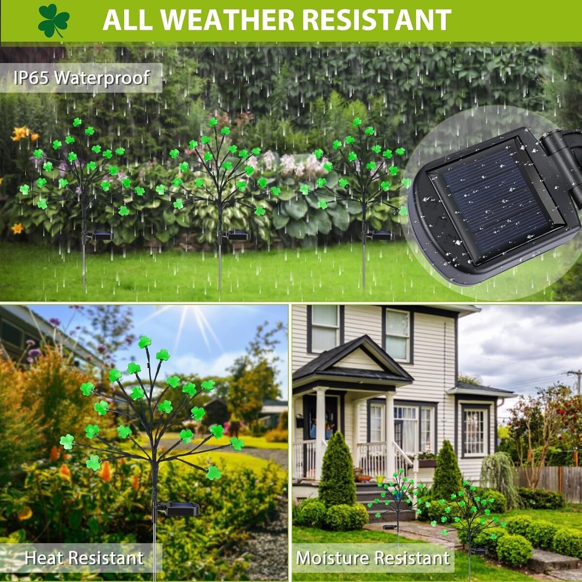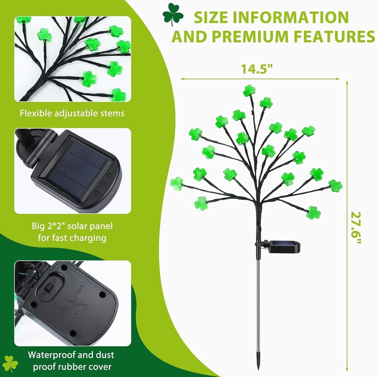 Set of 2 Solar Shamrock Stake Lights St Patricks Day 40 Green Clovers Yard Decor