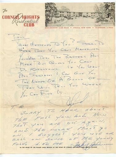 Cornell Heights Residential Club Stationery Map Letter Cornell Ithaca NY