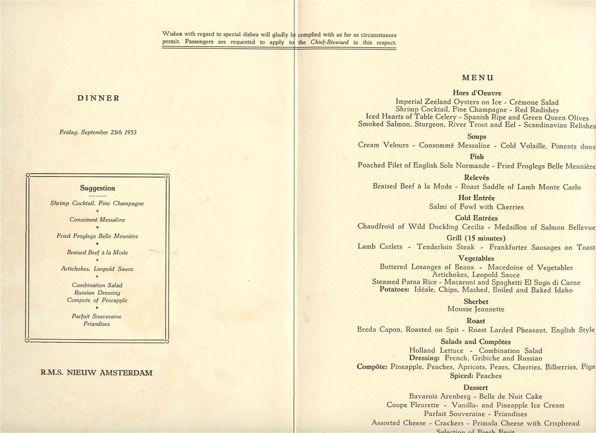 5 Holland America Line Menus Bird Cover 1953 and 29 similar items