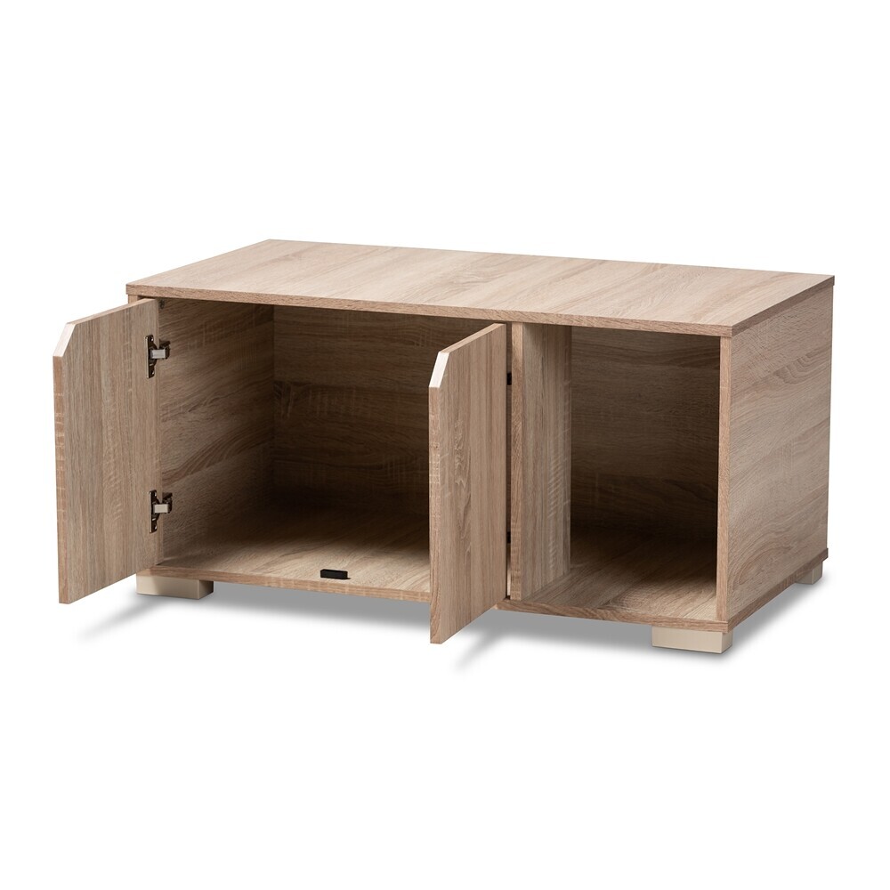 Two doors provide easy access to clean the litter box, while an open space adjacent to the doors allows your cat to come and go as they please.