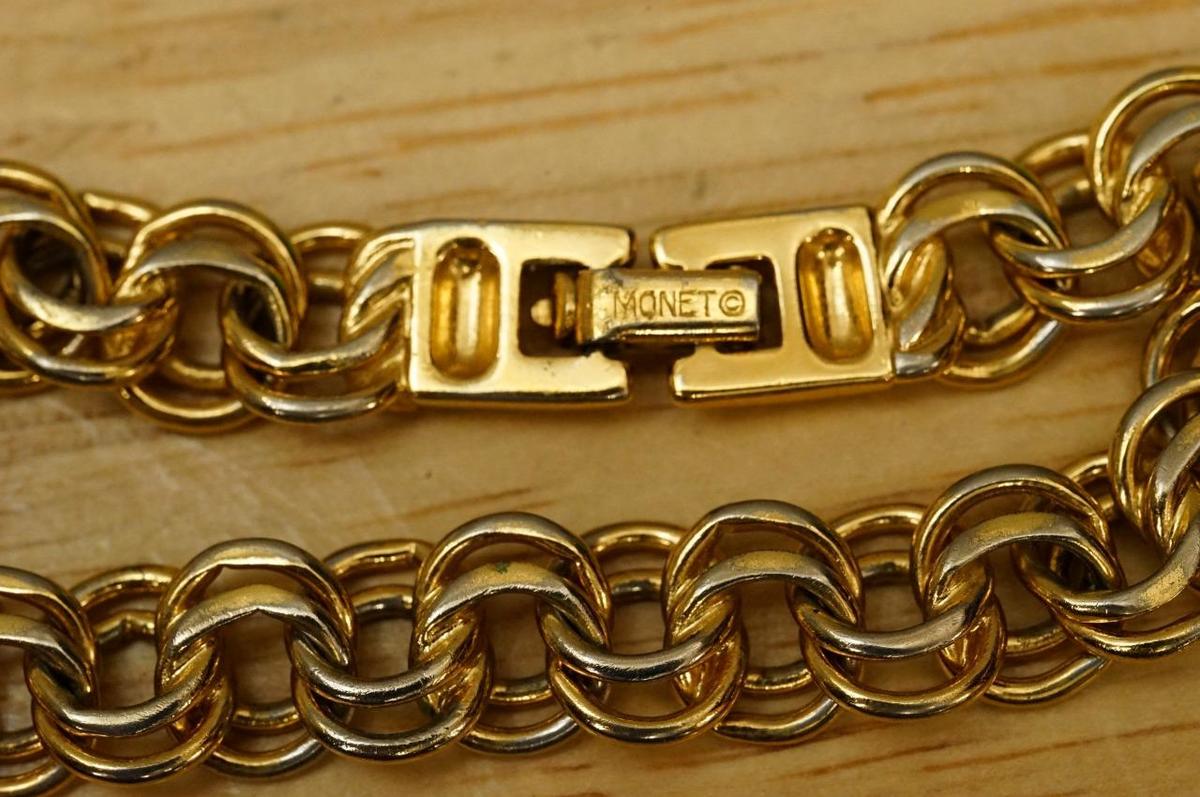Vintage Costume Jewelry MONET 10MM Double Link Charm Bracelet Gold Tone 7.5". Signed on the clasp. Smoke and pet free.