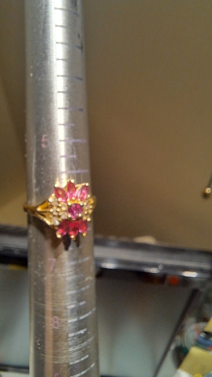 I'm including this ring for your consideration. I'm not certain but I believe to main color stones to be pink tourmeline, of course they could be pink rubalite or even ruby. Of course if they were one of those the ring would be worth considerably more, but if you don't know me yet, I do hope you will come to know that I prefer to err on the side of caution and if you catch a break because of that, I am rooting for you. Now full disclosure, one of the accent diamonds is missing. it was deeply set and pretty small so if I didn't tell you I doubt you would even notice but that isnt how I do things. Ive reduced the price in case you would like to have a jeweler replace the stone. The accent stone and labor should be around $50, I reduced the price $100. Again I want this to be a good experience for you. I would consider this a girls ring that I'm certain any girl would be happy to wear. If there are taxes in your state that is on you but the S,H, Insurance are on me.