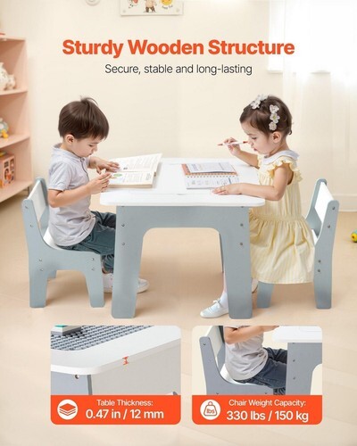 Secure Stable: Made from durable wood, this kids activity table is built to last! It supports up to 330 lbs (150 kg) on the chairs, has rounded corners, and smooth edges, ensuring your child plays securely while enjoying their time at the table
