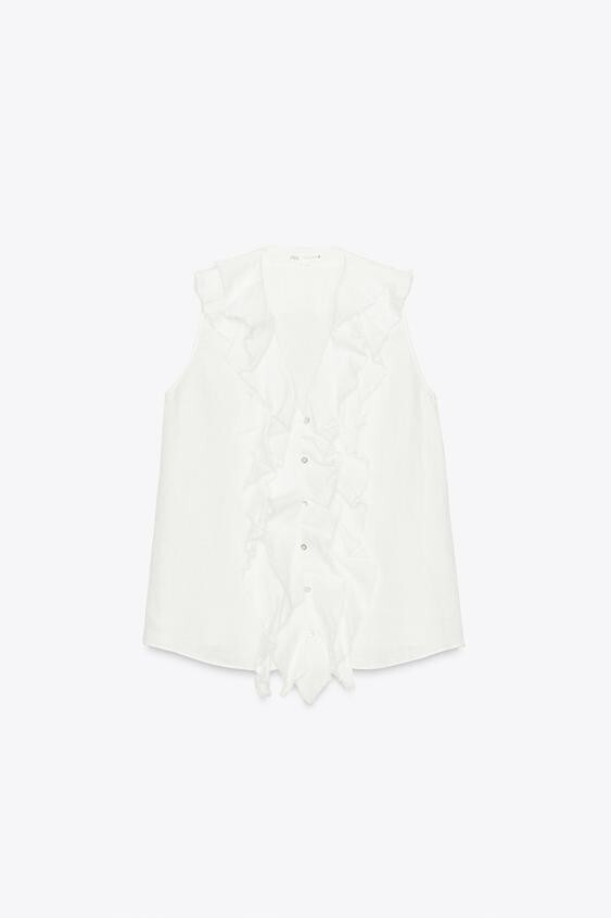 $79.90 Zara Zw Collection Linen Ruffle Shirt and similar items